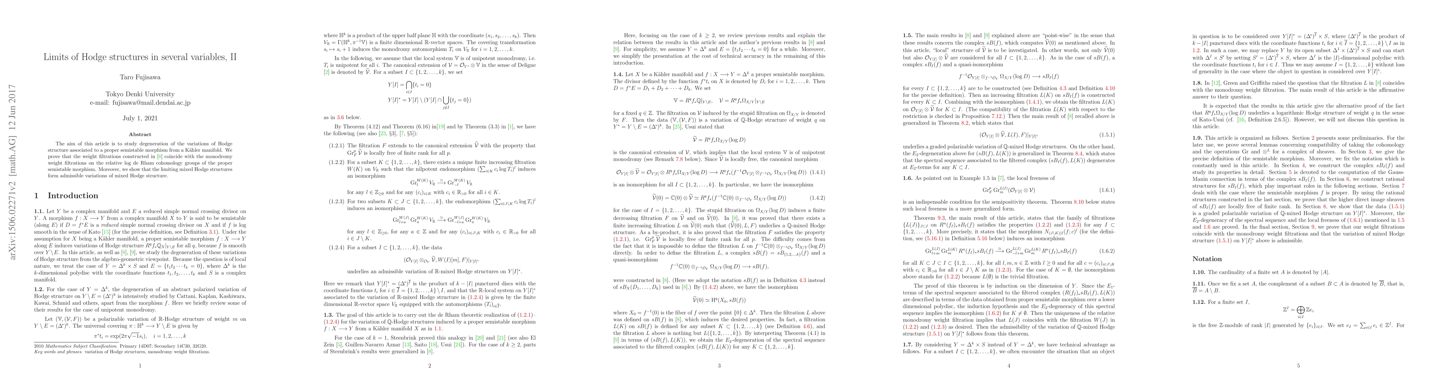 The aim of this article is to study degeneration of the variations of Hodge structure associated to a proper K\"ahler semistable morphism. We prove that the weight filtrations constructed in the author's previous paper coincide with the monodromy weight filtrations on the relative log de Rham cohomology groups of a proper K\"ahler semistable morphism. Moreover, we show that the limiting mixed Hodge structures form admissible variations of mixed Hodge structure.