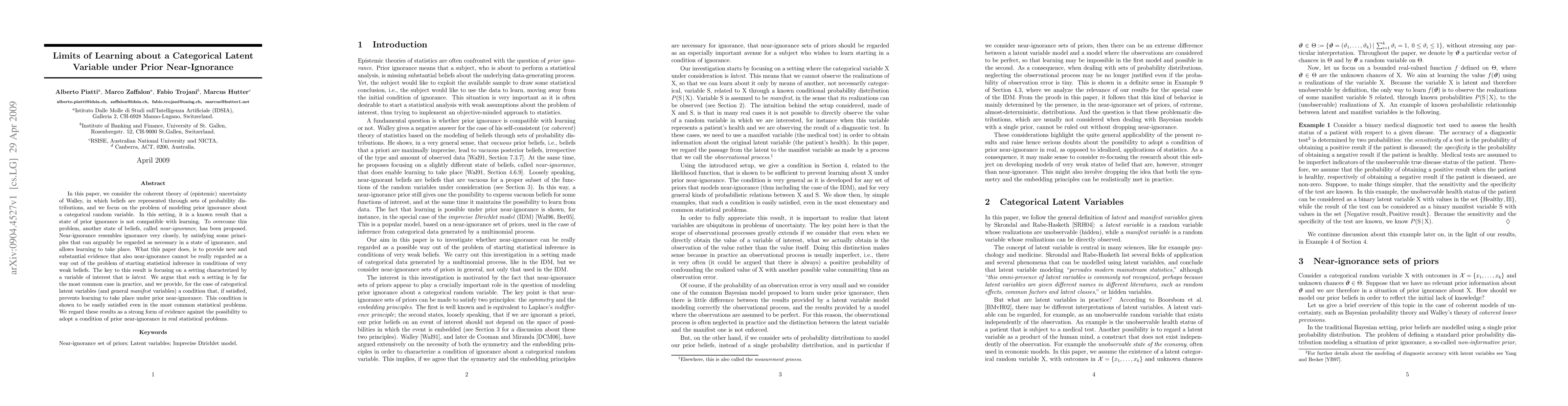 This paper investigates the limitations of learning about a categorical latent variable under prior near-ignorance, demonstrating that even near-ignorance cannot fully resolve the issue of weak initial beliefs. It provides a condition that often prevents learning in practical settings, arguing against the use of near-ignorance in statistical inference.