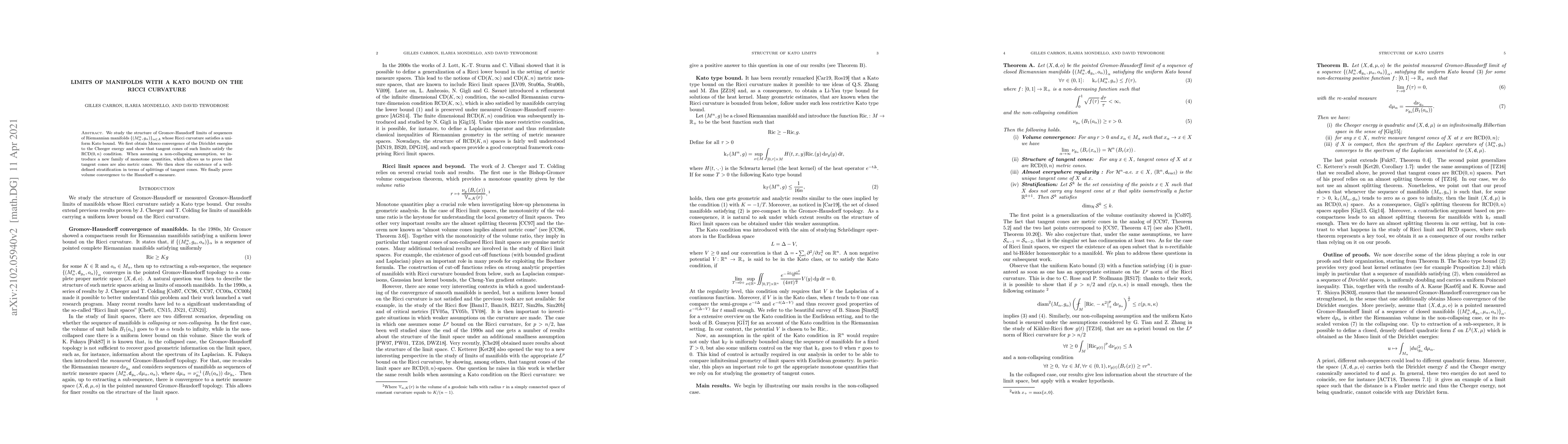 We study the structure of Gromov-Hausdorff limits of sequences of Riemannian manifolds $\{(M_\alpha^n,g_\alpha)\}_{\alpha \in A}$ whose Ricci curvature satisfies a uniform Kato bound. We first obtain Mosco convergence of the Dirichlet energies to the Cheeger energy and show that tangent cones of such limits satisfy the $\mathrm{RCD}(0,n)$ condition. When assuming a non-collapsing assumption, we introduce a new family of monotone quantities, which allows us to prove that tangent cones are also metric cones. We then show the existence of a well-defined stratification in terms of splittings of tangent cones. We finally prove volume convergence to the Hausdorff $n$-measure.