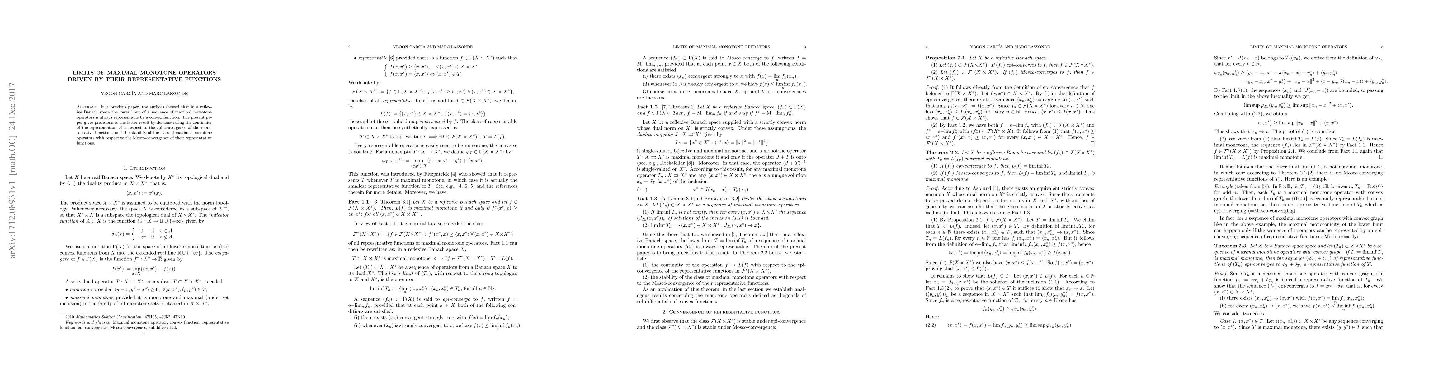 In a previous paper, the authors showed that in a reflexive Banach space the lower limit of a sequence of maximal monotone operators is always representable by a convex function. The present paper gives precisions to the latter result by demonstrating the continuity of the representation with respect to the epi-convergence of the representative functions, and the stability of the class of maximal monotone operators with respect to the Mosco-convergence of their representative functions.