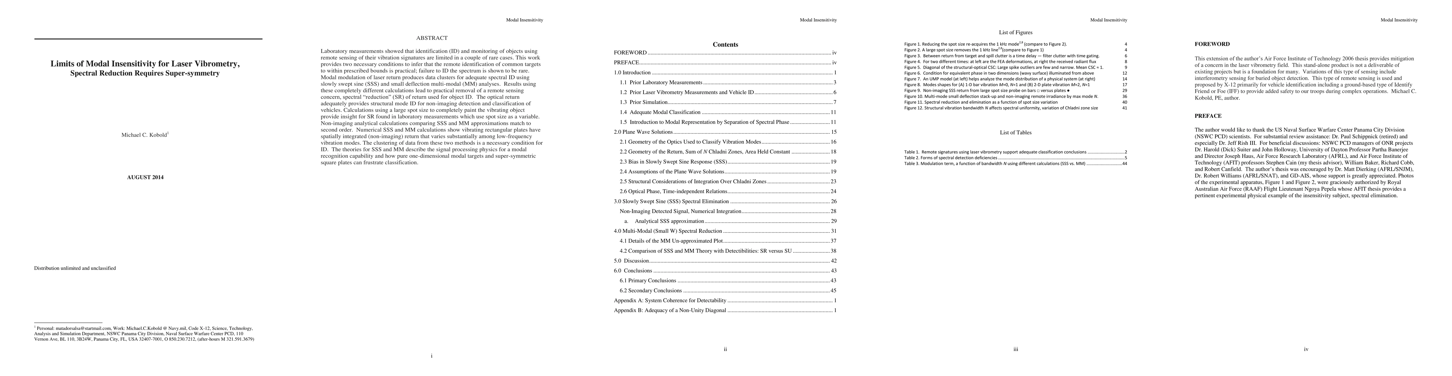 Lab measurements showed that identification (ID) and monitoring of objects using remote sensing of their vibration signatures are limited in a couple rare cases. This work provides two necessary conditions to infer that the identification of practical targets to within prescribed bounds; failure to ID the spectrum is shown to be rare. Modal modulation of laser return produces data clusters for adequate spectral ID using slowly swept sine (SSS) and small deflection multi-modal (MM) analyses. Results using these completely different calculations lead to practical removal of a remote sensing concern, spectral "reduction" (SR) of return used for object ID. The optical return provides structural mode ID for non-imaging detection and classification. Calculations using a large spot size to completely paint the vibrating object provide insight for SR found in laboratory measurements which use spot size as a variable. Non-imaging calculations comparing SSS and MM approximations show vibrating rectangular plates have spatially integrated (non-imaging) return that varies substantially among low-frequency vibration modes. The clustering of data from these two methods are the necessary conditions for ID. Theories for SSS and MM describe the signal processing physics for a modal recognition capability and how pure one-dimensional modal targets and super-symmetric square plates can frustrate classification.