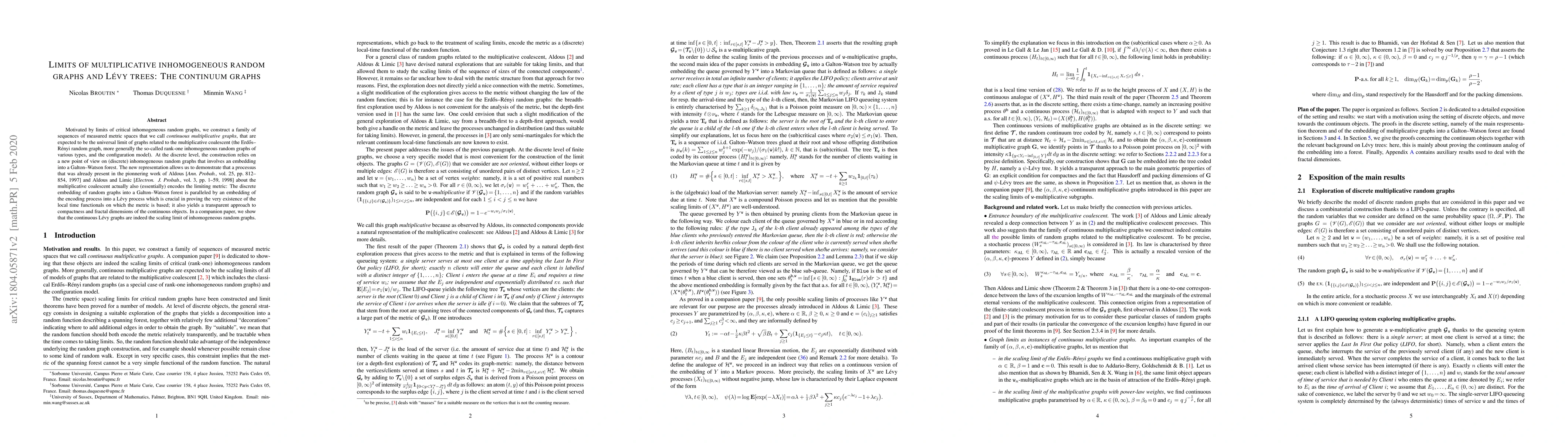 Motivated by limits of critical inhomogeneous random graphs, we construct a family of sequences of measured metric spaces that we call continuous multiplicative graphs, that are expected to be the universal limit of graphs related to the multiplicative coalescent (the Erd\H{o}s--R\'enyi random graph, more generally the so-called rank-one inhomogeneous random graphs of various types, and the configuration model). At the discrete level, the construction relies on a new point of view on (discrete) inhomogeneous random graphs that involves an embedding into a Galton--Watson forest. The new representation allows us to demonstrate that a processus that was already present in the pionnering work of Aldous [Ann. Probab., vol.~25, pp.~812--854, 1997] and Aldous and Limic [Electron. J. Probab., vol.~3, pp.~1--59, 1998] about the multiplicative coalescent actually also (essentially) encodes the limiting metric: The discrete embedding of random graphs into a Galton--Watson forest is paralleled by an embedding of the encoding process into a L\'evy process which is crucial in proving the very existence of the local time functionals on which the metric is based; it also yields a transparent approach to compactness and fractal dimensions of the continuous objects. In a companion paper, we show that the continuous L\'evy graphs are indeed the scaling limit of inhomogeneous random graphs.