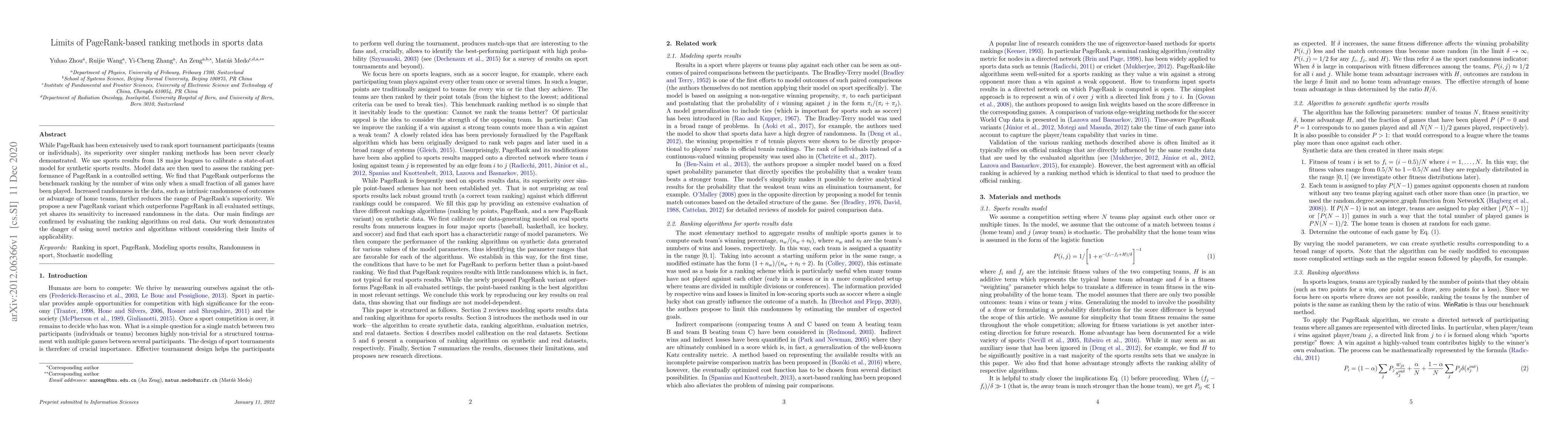 This paper examines the effectiveness of PageRank-based ranking methods in sports, finding that while it outperforms simple win-based rankings initially, its superiority diminishes with increased randomness and data complexity. The authors propose a new variant that consistently outperforms PageRank but shares its sensitivity to data randomness, highlighting the need for careful consideration of algorithm applicability.