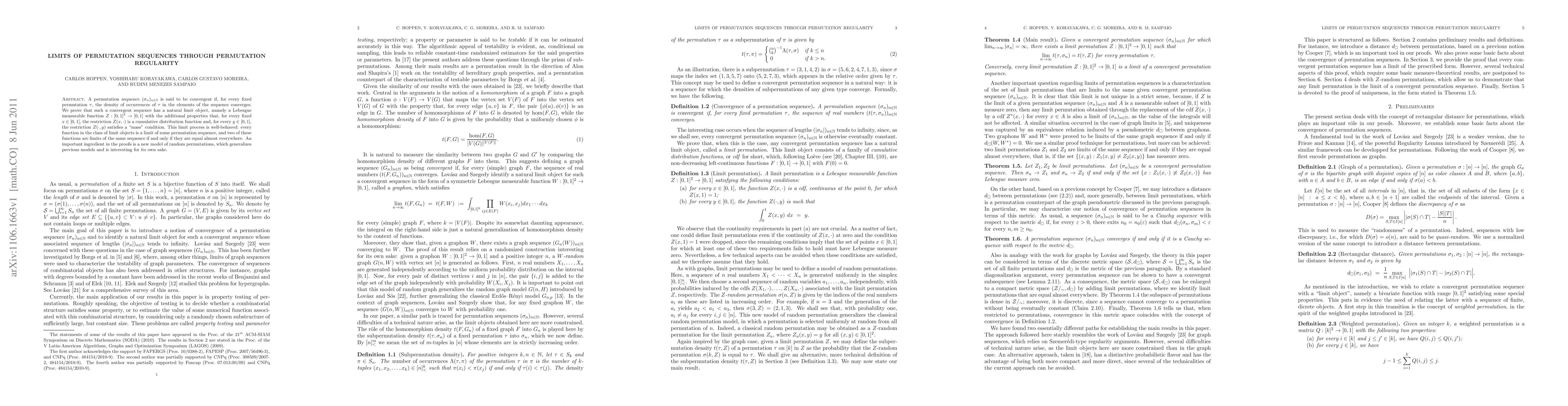 A permutation sequence $(\sigma_n)_{n \in \mathbb{N}}$ is said to be convergent if, for every fixed permutation $\tau$, the density of occurrences of $\tau$ in the elements of the sequence converges. We prove that such a convergent sequence has a natural limit object, namely a Lebesgue measurable function $Z:[0,1]^2 \to [0,1]$ with the additional properties that, for every fixed $x \in [0,1]$, the restriction $Z(x,\cdot)$ is a cumulative distribution function and, for every $y \in [0,1]$, the restriction $Z(\cdot,y)$ satisfies a "mass" condition. This limit process is well-behaved: every function in the class of limit objects is a limit of some permutation sequence, and two of these functions are limits of the same sequence if and only if they are equal almost everywhere. An important ingredient in the proofs is a new model of random permutations, which generalizes previous models and is interesting for its own sake.