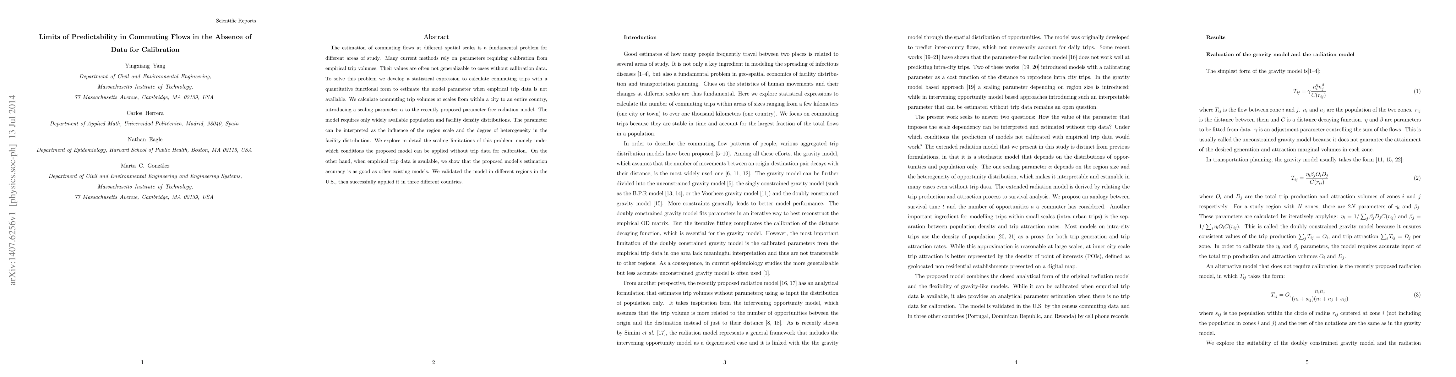 The estimation of commuting flows at different spatial scales is a fundamental problem for different areas of study. Many current methods rely on parameters requiring calibration from empirical trip volumes. Their values are often not generalizable to cases without calibration data. To solve this problem we develop a statistical expression to calculate commuting trips with a quantitative functional form to estimate the model parameter when empirical trip data is not available. We calculate commuting trip volumes at scales from within a city to an entire country, introducing a scaling parameter alpha to the recently proposed parameter free radiation model. The model requires only widely available population and facility density distributions. The parameter can be interpreted as the influence of the region scale and the degree of heterogeneity in the facility distribution. We explore in detail the scaling limitations of this problem, namely under which conditions the proposed model can be applied without trip data for calibration. On the other hand, when empirical trip data is available, we show that the proposed model's estimation accuracy is as good as other existing models. We validated the model in different regions in the U.S., then successfully applied it in three different countries.