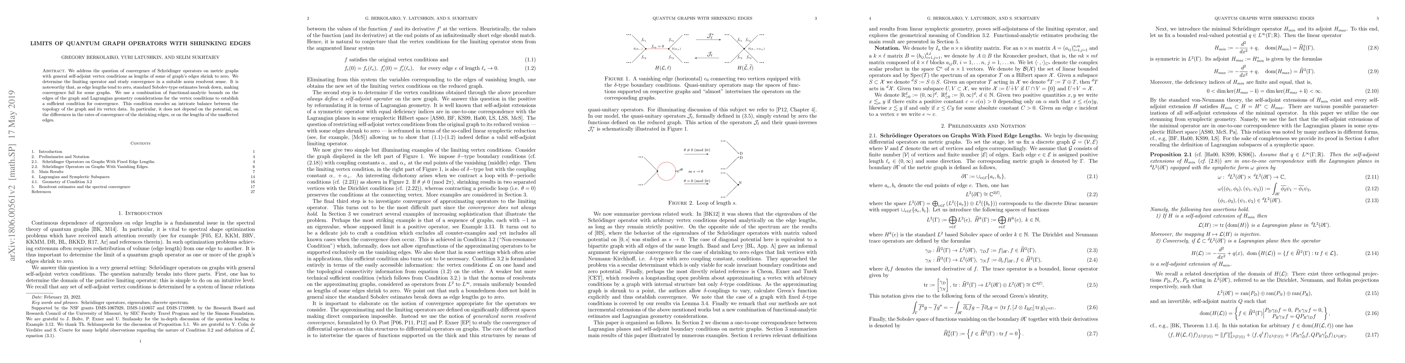 This paper investigates the convergence of Schrödinger operators on metric graphs as certain edges shrink to zero, determining the limiting operator and establishing conditions for convergence. It finds that standard Sobolev estimates fail, and proposes a functional-analytic and geometric condition for convergence that balances graph topology and vertex conditions, independent of potential and edge convergence rates.