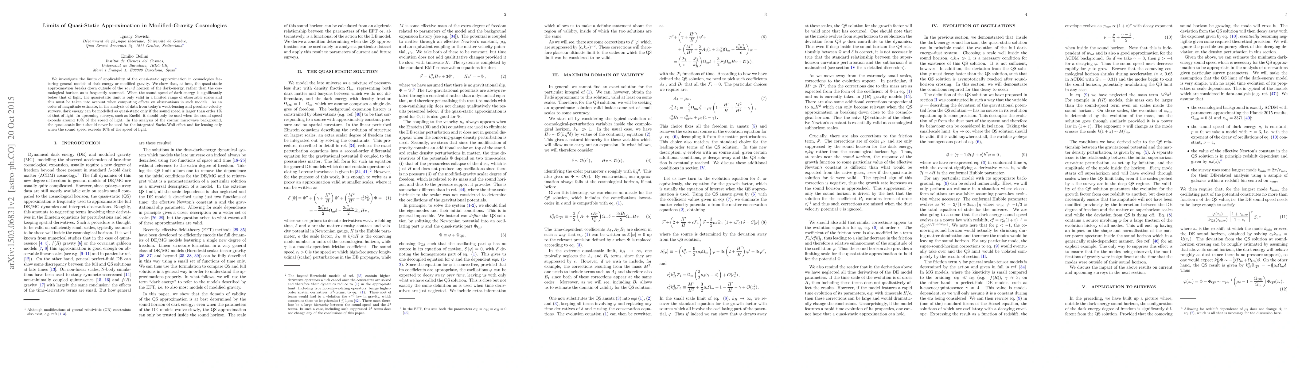 This paper examines the limits of the quasi-static approximation in modified-gravity cosmologies, revealing that it breaks down outside the sound horizon of dark energy rather than the cosmological horizon. For accurate modeling, the sound speed of dark energy must exceed 1% of light speed for current surveys and 10% for future surveys like Euclid.
