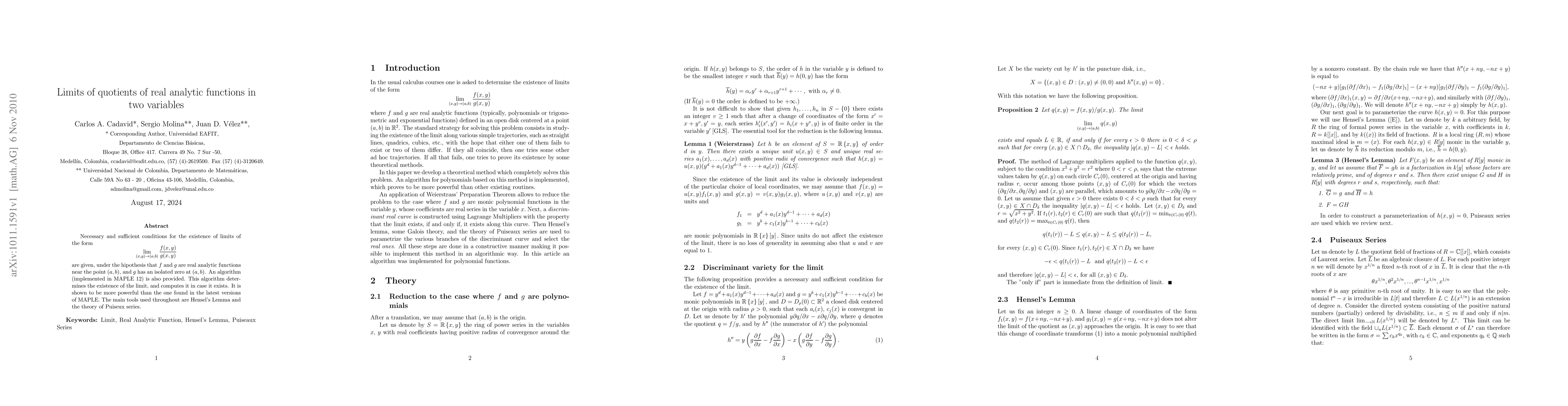 Researchers develop a method to determine if limits of quotients of real analytic functions in two variables exist, providing a more powerful algorithm than existing versions of MAPLE.