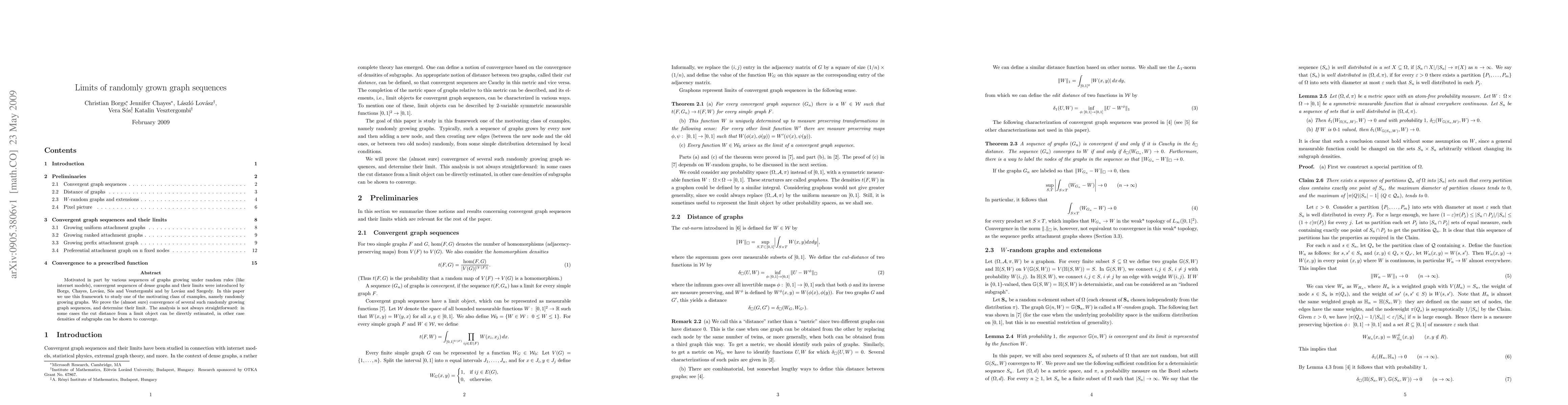 This paper investigates the convergence of randomly grown graph sequences, proving their almost sure convergence and determining their limits. The analysis involves estimating cut distances and demonstrating the convergence of subgraph densities, highlighting the complexity of the process.