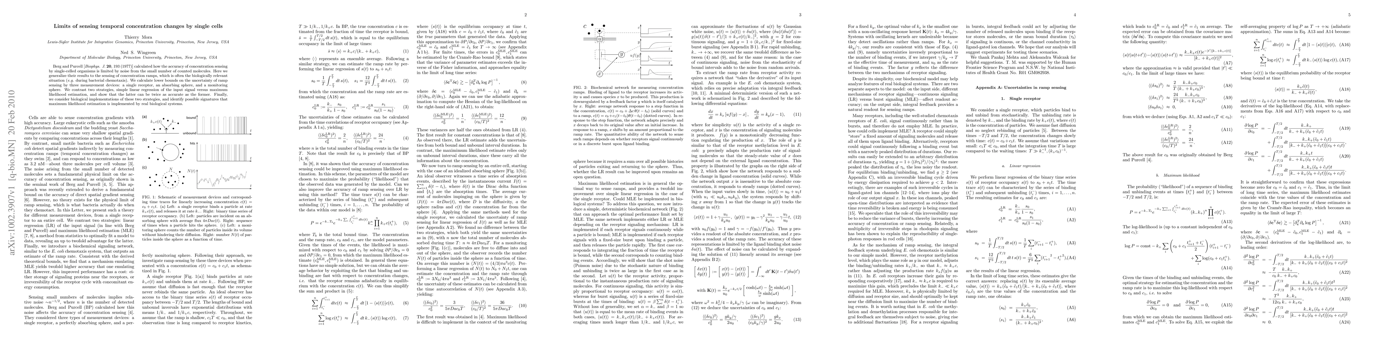 Berg and Purcell [Biophys. J. 20, 193 (1977)] calculated how the accuracy of concentration sensing by single-celled organisms is limited by noise from the small number of counted molecules. Here we generalize their results to the sensing of concentration ramps, which is often the biologically relevant situation (e.g. during bacterial chemotaxis). We calculate lower bounds on the uncertainty of ramp sensing by three measurement devices: a single receptor, an absorbing sphere, and a monitoring sphere. We contrast two strategies, simple linear regression of the input signal versus maximum likelihood estimation, and show that the latter can be twice as accurate as the former. Finally, we consider biological implementations of these two strategies, and identify possible signatures that maximum likelihood estimation is implemented by real biological systems.