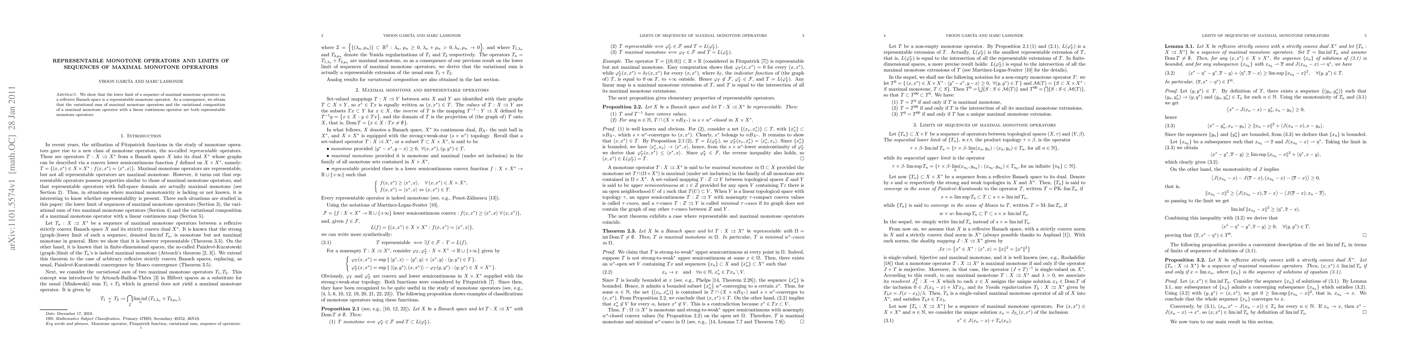 This paper demonstrates that the lower limit of a sequence of maximal monotone operators in a reflexive Banach space is itself a representable monotone operator. It also proves that the variational sum and composition of maximal monotone operators yield representable monotone operators.