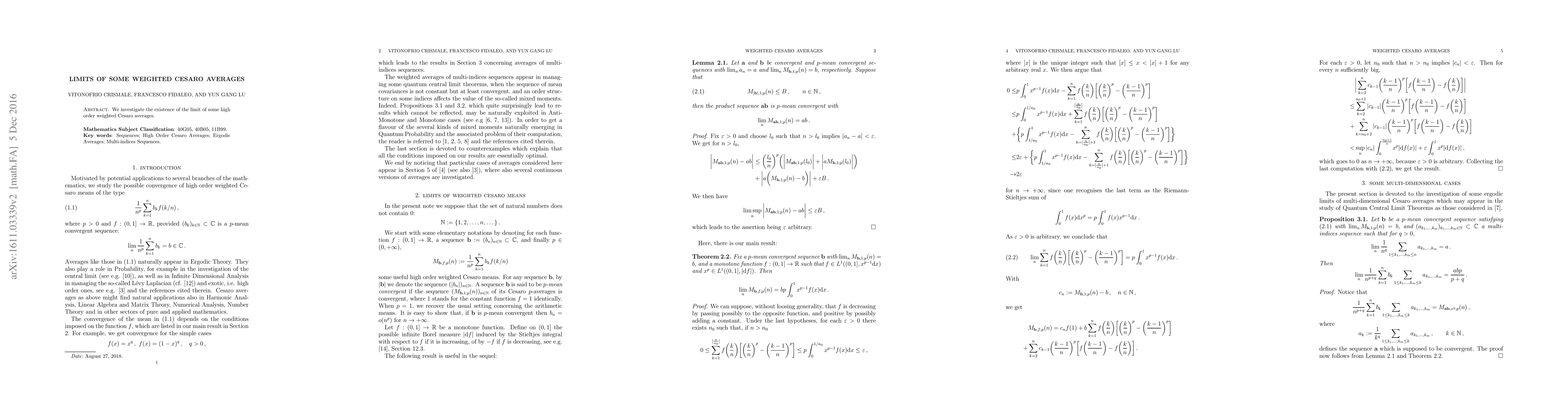Summary: This paper examines the convergence behavior of high-order weighted Cesaro averages, focusing on the existence of their limits. The study provides insights into the conditions under which these averages stabilize.