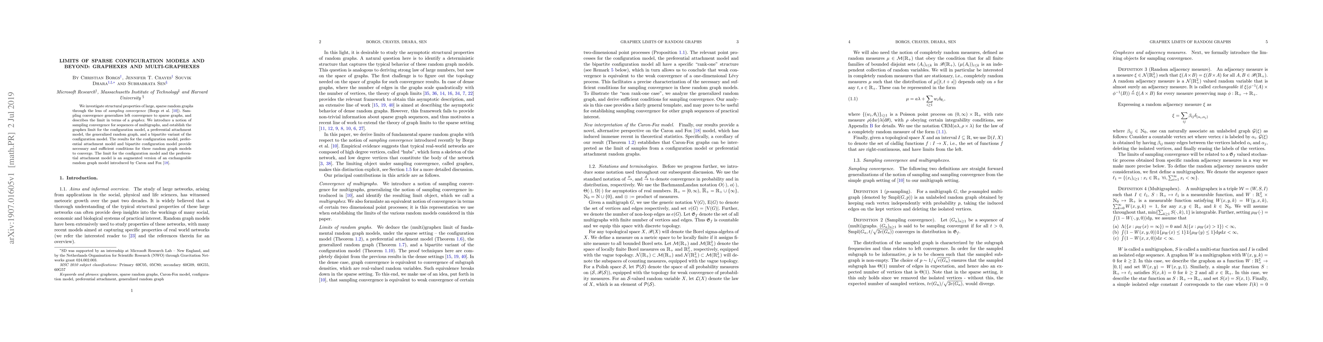 Researchers investigate convergence of random graph models, including configuration model and preferential attachment model, to an exchangeable random graph limit in the context of sparse graphs and multigraphs.