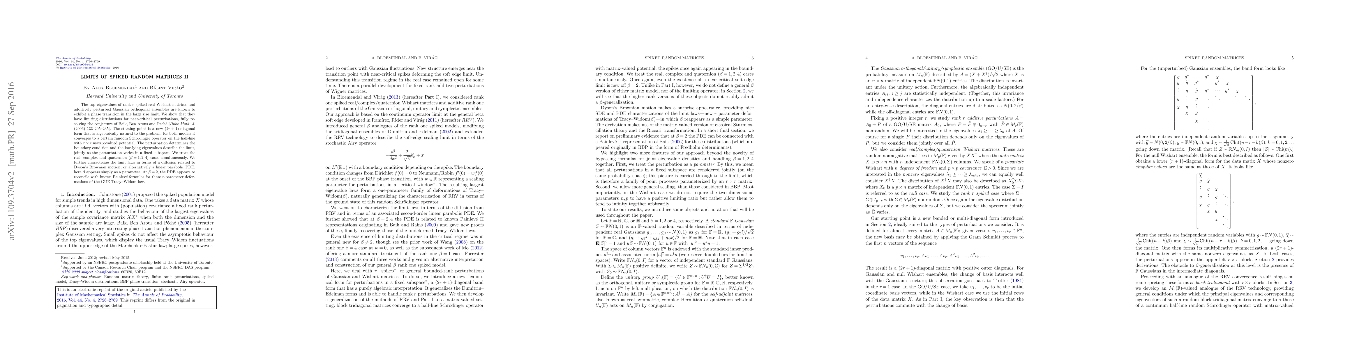 This paper resolves a conjecture on the phase transition of spiked random matrices in the large size limit, showing that they converge to specific limiting distributions, including a diffusion related to Dyson's Brownian motion or a linear parabolic PDE.