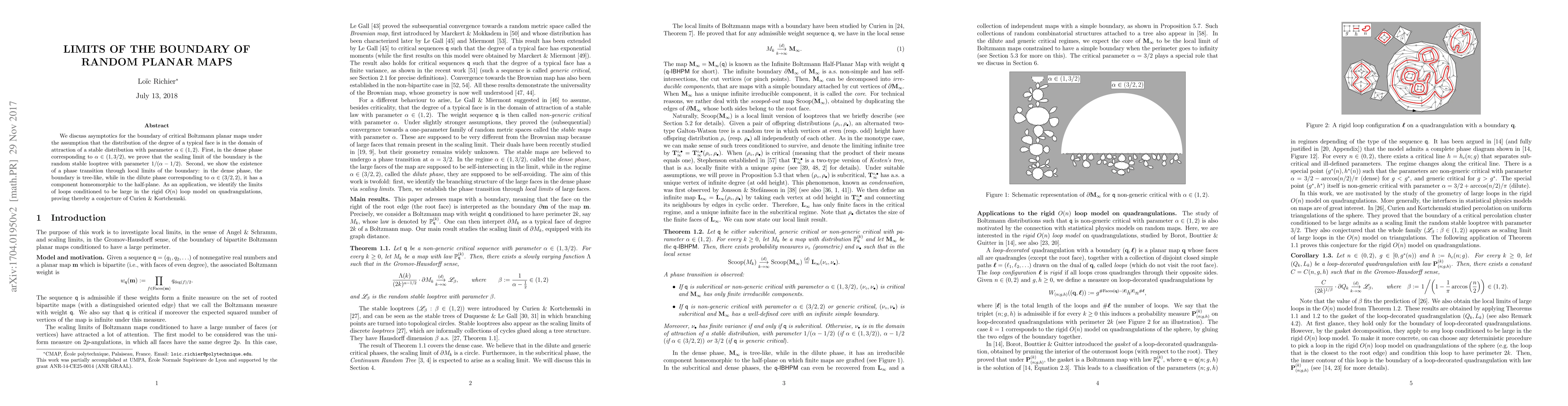 We discuss asymptotics for the boundary of critical Boltzmann planar maps under the assumption that the distribution of the degree of a typical face is in the domain of attraction of a stable distribution with parameter $\alpha \in (1,2)$. First, in the dense phase corresponding to $\alpha\in(1,3/2)$, we prove that the scaling limit of the boundary is the random stable looptree with parameter $(\alpha-1/2)^{-1}$. Second, we show the existence of a phase transition through local limits of the boundary: in the dense phase, the boundary is tree-like, while in the dilute phase corresponding to $\alpha\in(3/2,2)$, it has a component homeomorphic to the half-plane. As an application, we identify the limits of loops conditioned to be large in the rigid $O(n)$ loop model on quadrangulations, proving thereby a conjecture of Curien and Kortchemski.