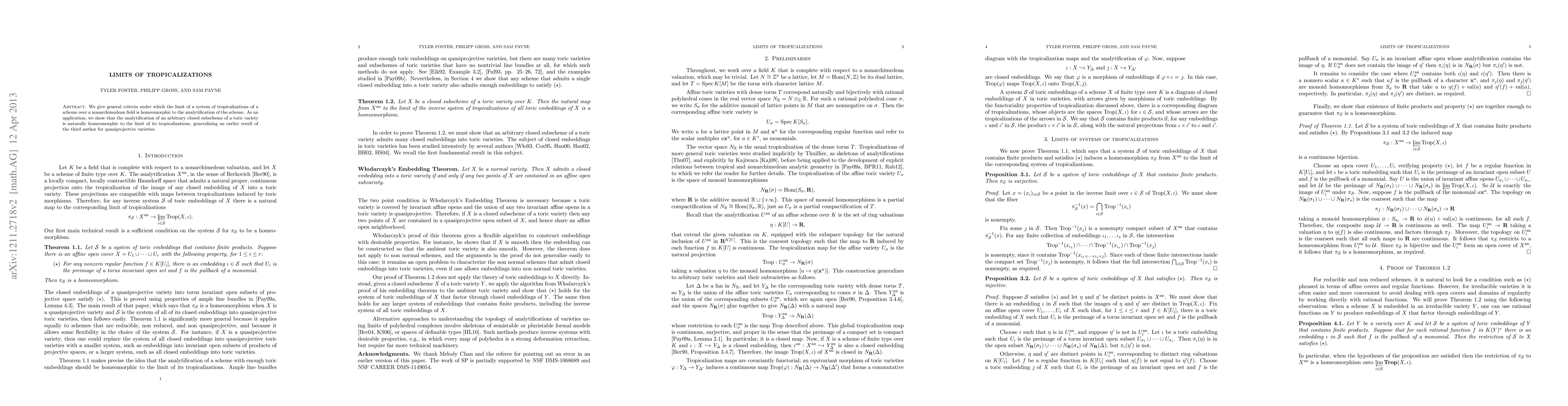 Researchers found general criteria for when the limit of tropicalizations of a scheme is homeomorphic to its analytification, with applications to toric varieties.