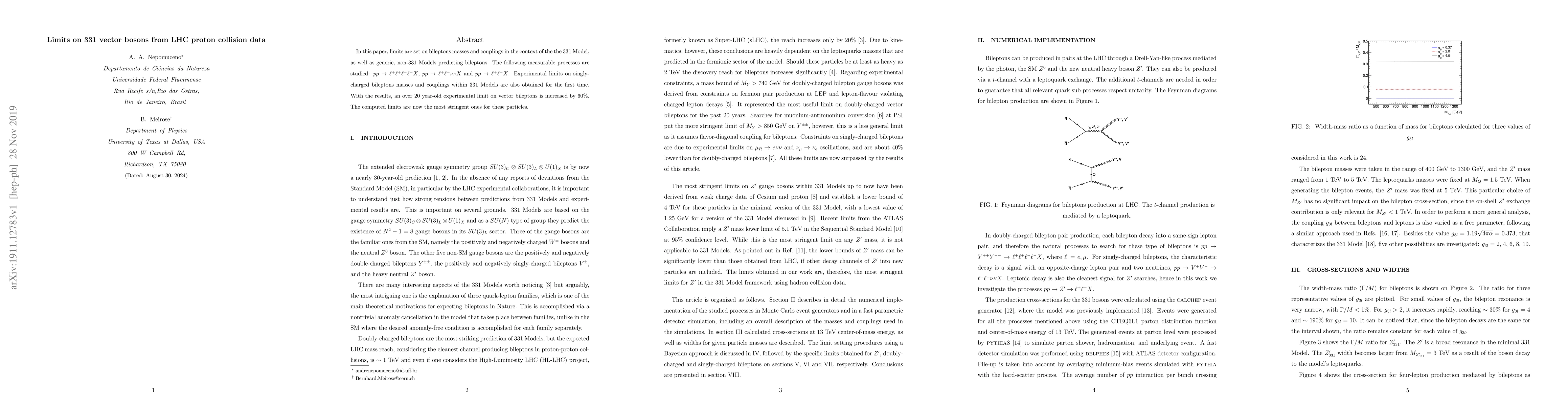 In this paper, limits are set on bileptons masses and couplings in the context of the the 331 Model, as well as generic, non-331 Models predicting bileptons. The following measurable processes are studied: $pp \rightarrow \ell^{+}\ell^{+}\ell^{-}\ell^{-}X$, $pp \rightarrow \ell^{+}\ell^{-} \nu \nu X$ and $pp \rightarrow \ell^{+}\ell^{-} X$. Experimental limits on singly-charged bileptons masses and couplings within 331 Models are also obtained for the first time. With the results, an over 20 year-old experimental limit on vector bileptons is increased by 60\%. The computed limits are now the most stringent ones for these particles.
