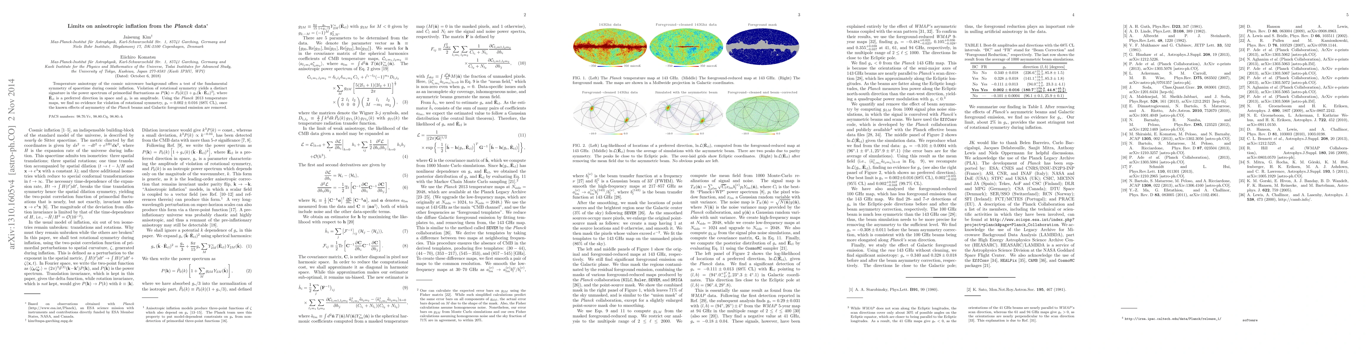 This research uses Planck 2013 cosmic microwave background data to test for rotational symmetry violation during cosmic inflation. Findings indicate no evidence for such violation, with an upper limit of $g_*=0.002pm 0.016$ (68% CL), after accounting for beam asymmetry and Galactic foregrounds.