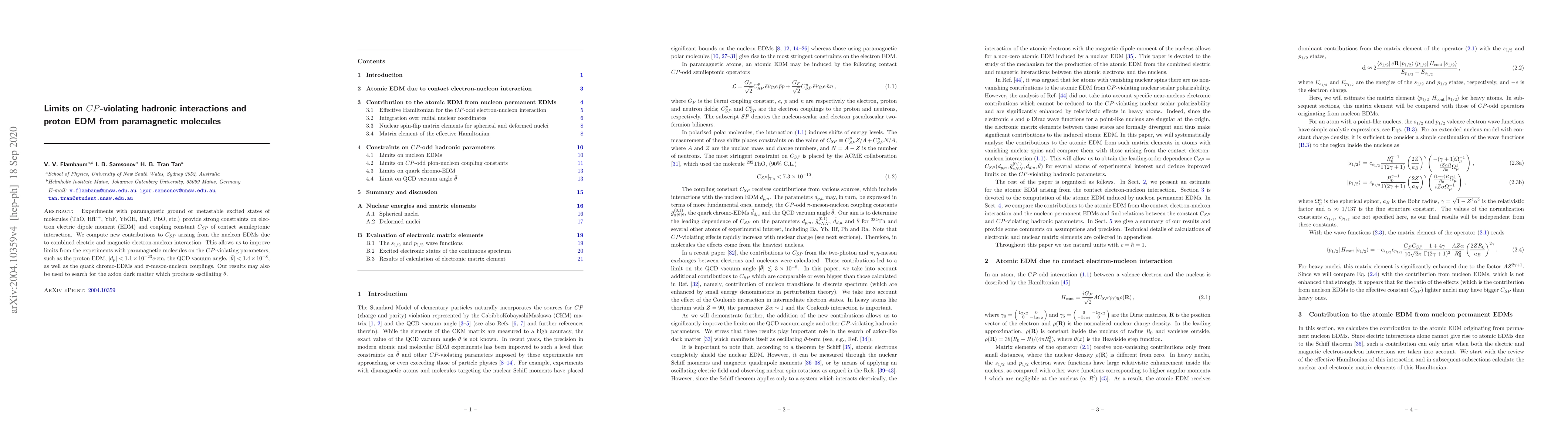 This paper presents improved constraints on $CP$-violating hadronic interactions and the proton electric dipole moment (EDM) using experiments with paramagnetic molecules. It computes new contributions to $C_{SP}$ from nucleon EDMs, leading to refined limits on the proton EDM, QCD vacuum angle, and quark chromo-EDMs.