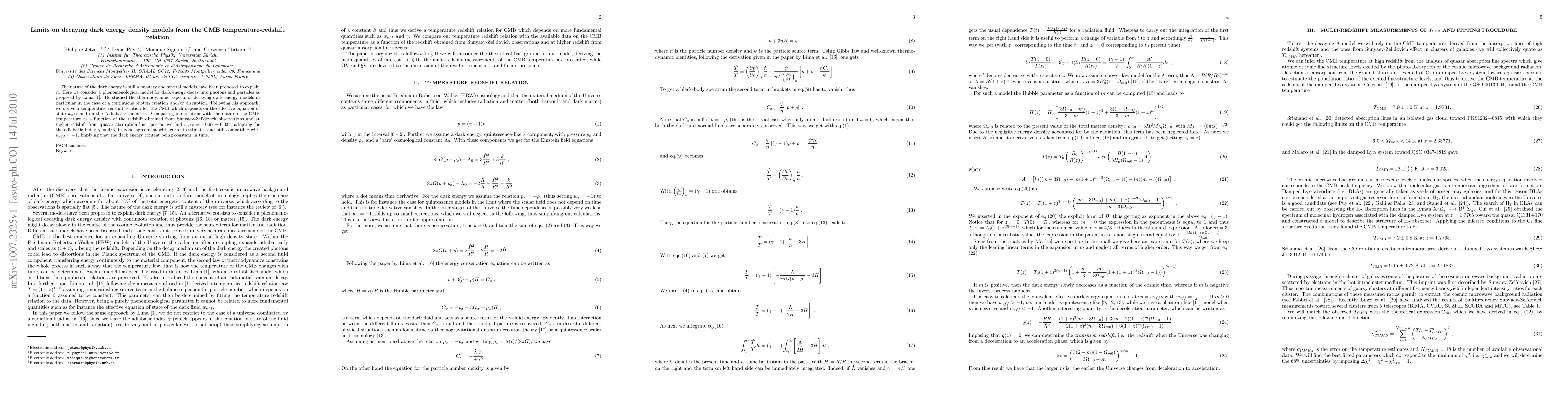 The work introduces a novel approach to constrain decaying dark energy models using CMB temperature-redshift relations, offering an alternative method to existing dark energy studies based on supernovae or baryon acoustic oscillations.