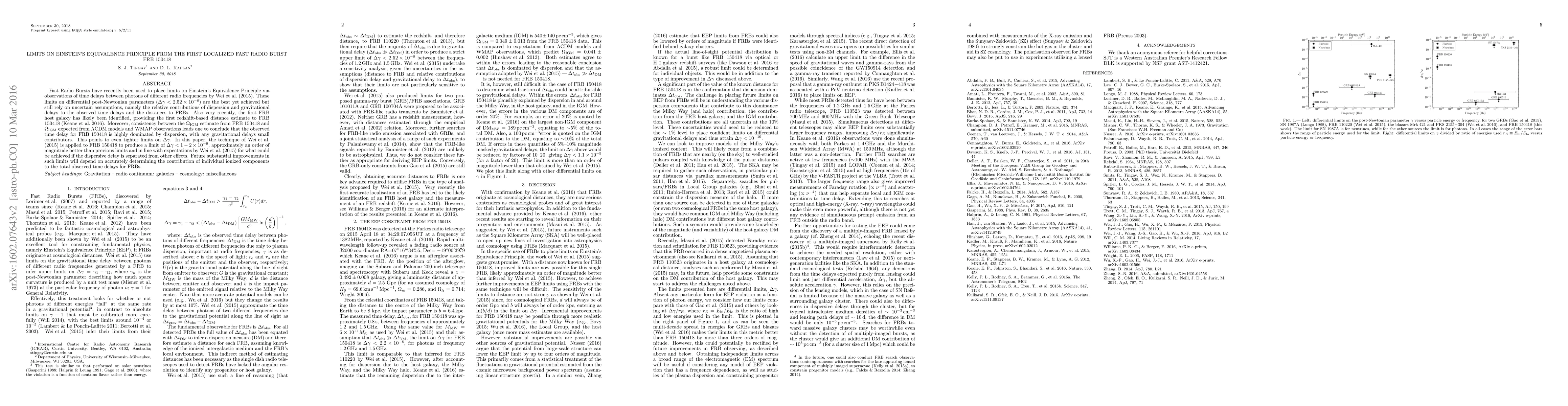 Researchers apply a technique to Fast Radio Bursts to find tighter limits on Einstein's Equivalence Principle, achieving an order of magnitude better limit than previous studies with even more precise estimates possible once individual ionized components can be accurately accounted for.