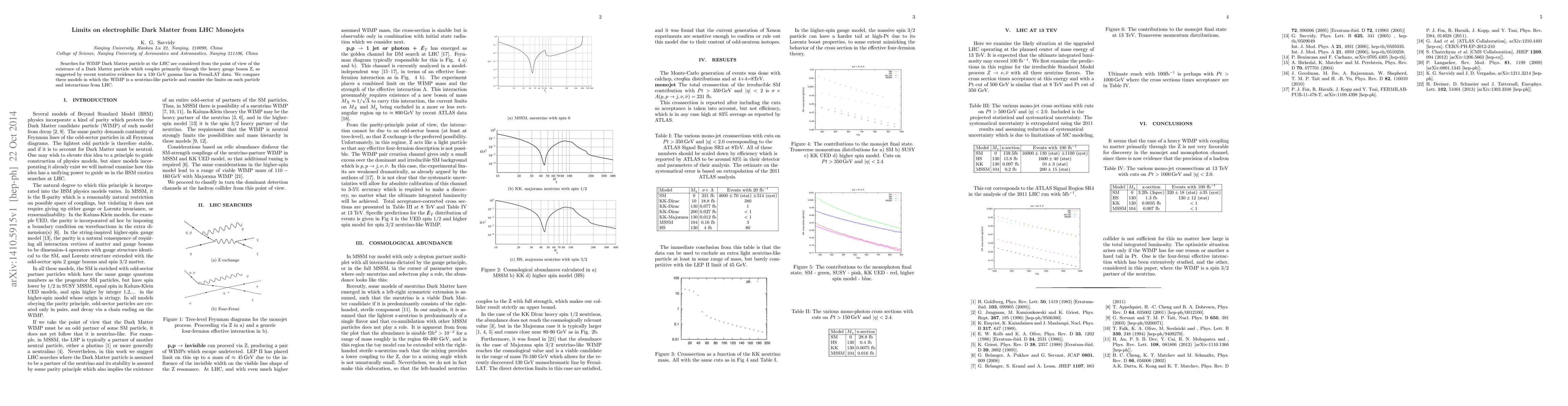 This research explores limits on Dark Matter particles, specifically those interacting predominantly via the heavy Z boson, using data from LHC's monojet searches. It contrasts three models where Dark Matter particles behave like neutrinos, setting constraints on these particles and their interactions based on LHC findings.