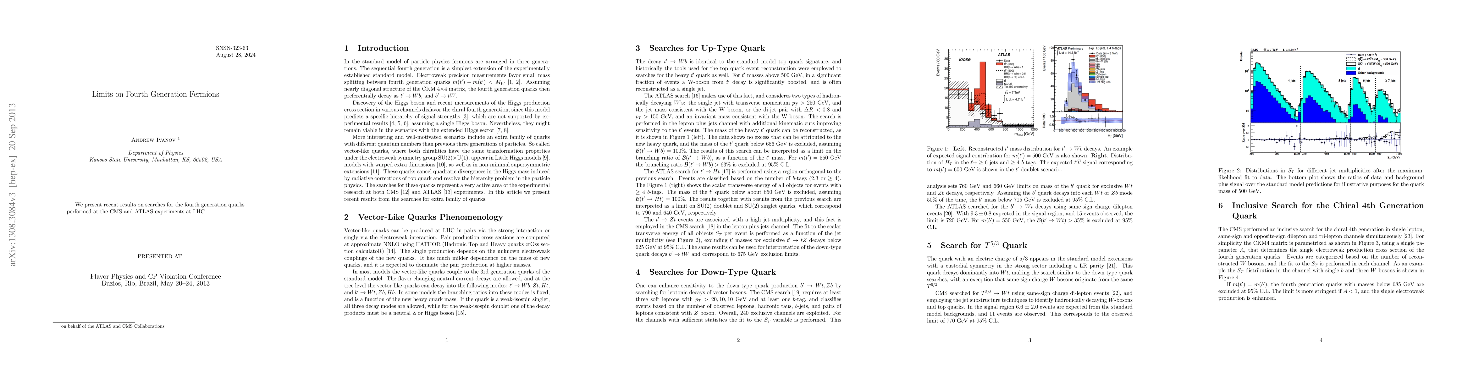 Summary: This paper reports on the latest search results for fourth generation quarks conducted by the CMS and ATLAS experiments at the Large Hadron Collider, setting new limits on the existence of these hypothetical particles.