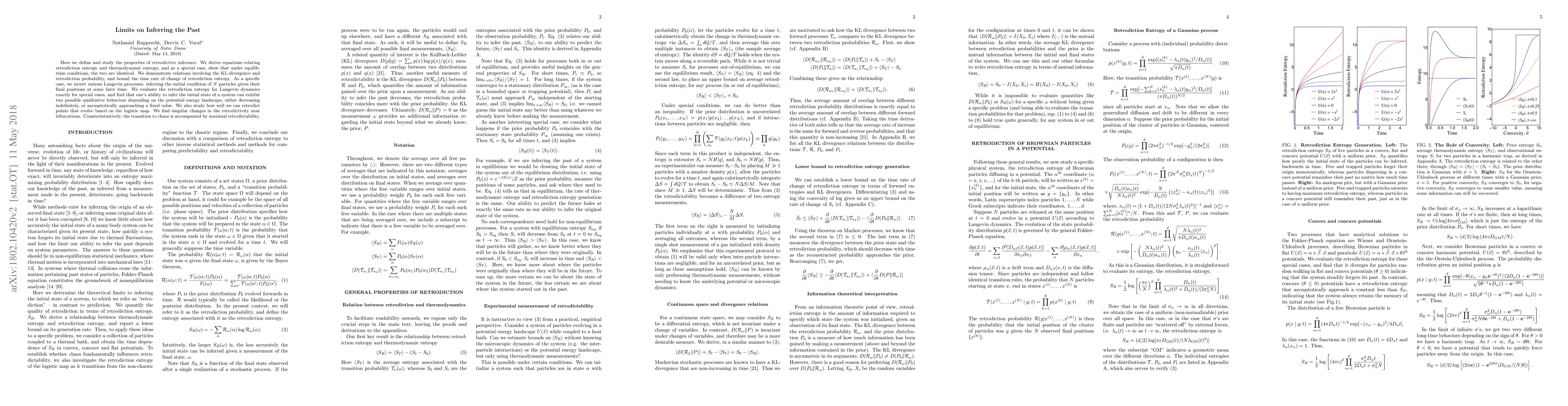 Researchers studied retrodictive inference, finding that inferring a system's past state can exhibit two possible behaviors depending on its potential energy landscape: decreasing indefinitely or approaching a fixed value. The transition to chaos is surprisingly accompanied by maximal retrodictability.