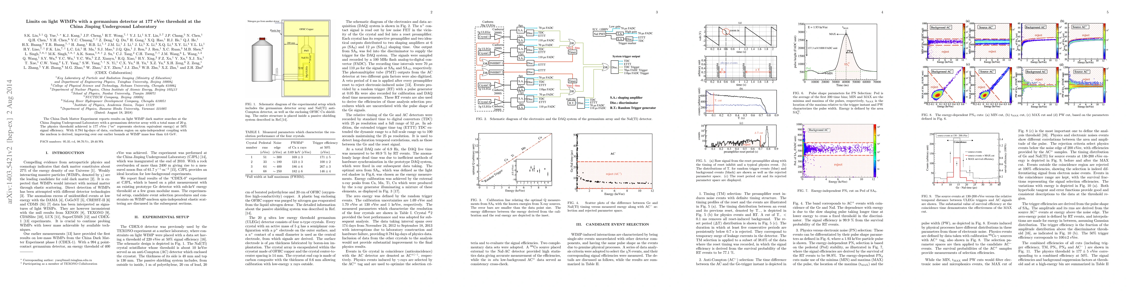 The China Dark Matter Experiment utilizes a germanium detector array to search for light WIMP dark matter, achieving a physics threshold of 177 eVee. The study, conducted at the China Jinping Underground Laboratory, improves previous limits on spin-independent coupling for WIMPs with masses below 4.6 GeV.