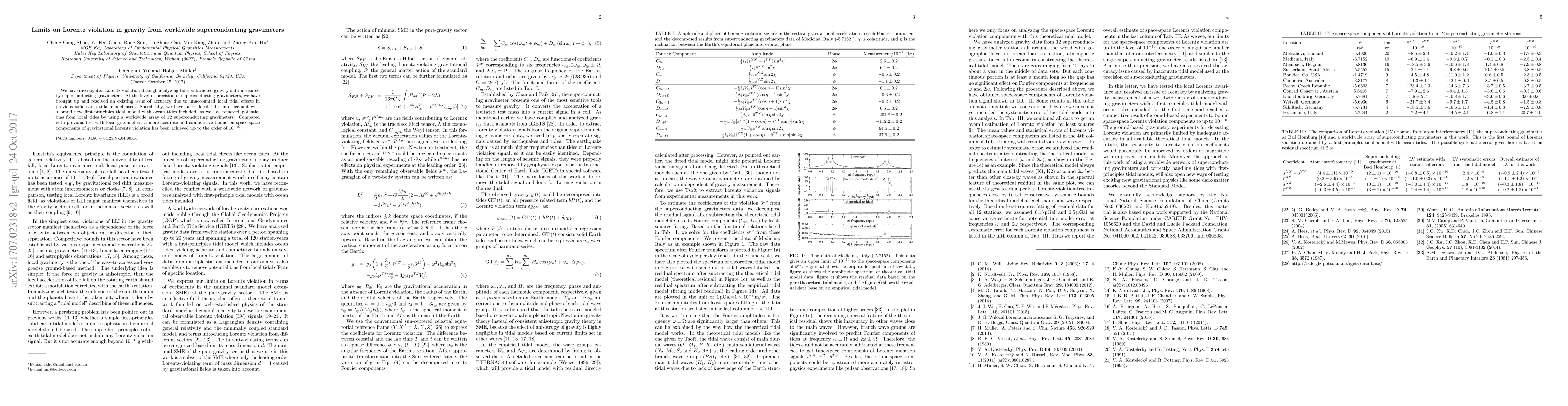This study uses a global network of superconducting gravimeters to investigate Lorentz violation in gravity, extracting signals from the difference between measured gravity and a tidal model. By employing an ocean tides model derived from first principles, the authors improve the upper limit on space-space components of gravitational Lorentz violation in the minimal standard model extension to $10^{-10}$, surpassing previous atom-interferometer test sensitivities.