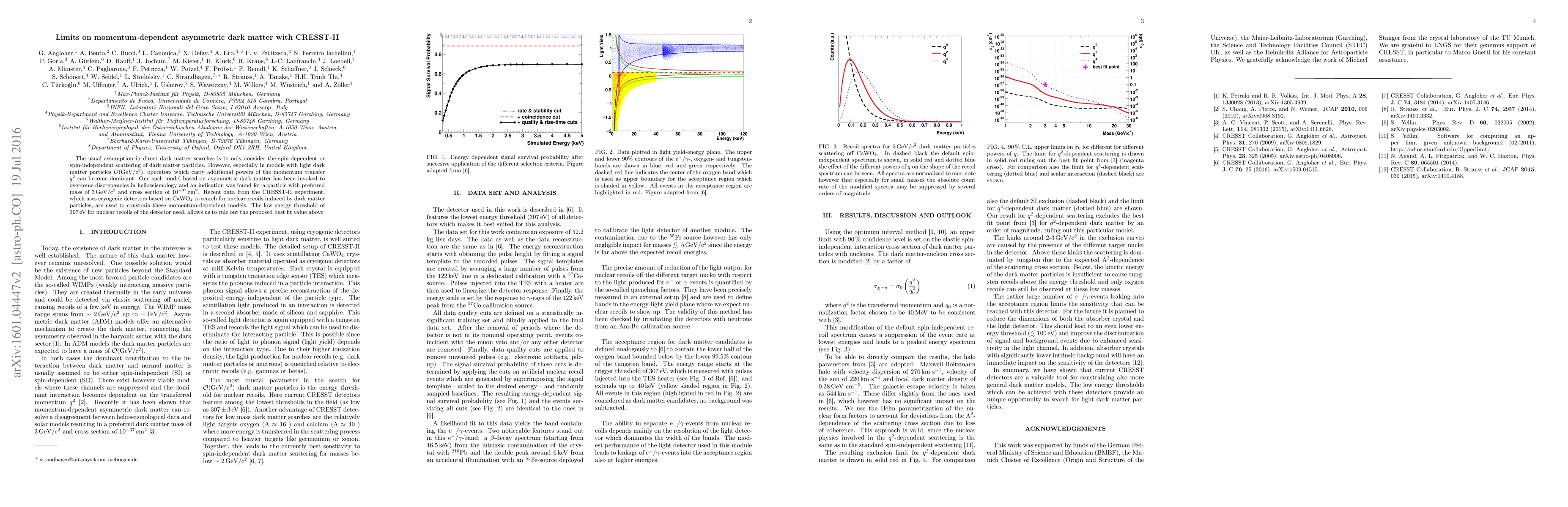 The CRESST-II experiment, using cryogenic detectors, sets new limits on momentum-dependent asymmetric dark matter models, particularly those involving light particles with a mass of 3 GeV/c², ruling out previously proposed best fit values for these models.