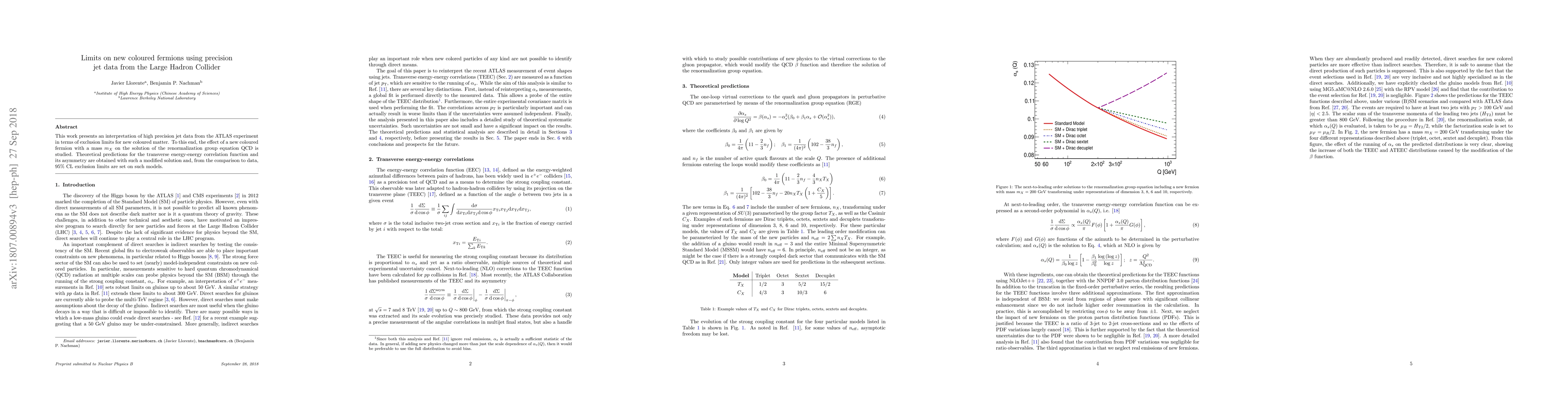 This work presents an interpretation of high precision jet data from the ATLAS experiment in terms of exclusion limits for new coloured matter. To this end, the effect of a new coloured fermion with a mass $m_X$ on the solution of the renormalization group equation QCD is studied. Theoretical predictions for the transverse energy-energy correlation function and its asymmetry are obtained with such a modified solution and, from the comparison to data, 95\% CL exclusion limits are set on such models.