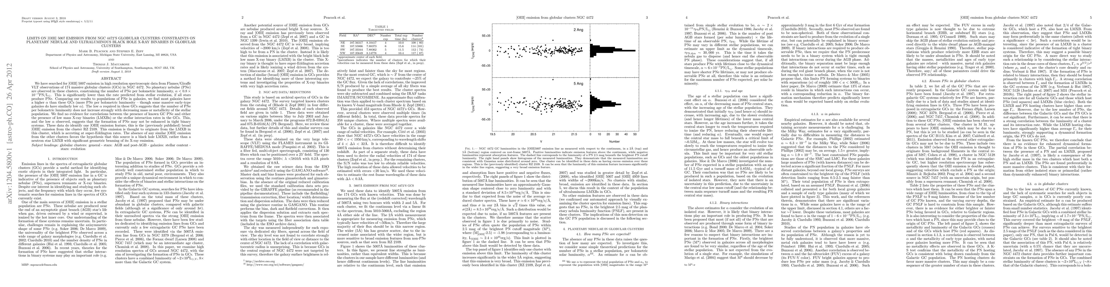We have searched for [OIII] 5007 emission in high resolution spectroscopic data from Flames/Giraffe VLT observations of 174 massive globular clusters (GCs) in NGC4472. No planetary nebulae (PNe) are observed in these clusters, constraining the number of PNe per bolometric luminosity, \alpha<0.8*10^{-7}PN/L_{\odot}. This is significantly lower than the rate predicted from stellar evolution, if all stars produce PNe. Comparing our results to populations of PNe in galaxies, we find most galaxies have a higher \alpha than these GCs (more PNe per bolometric luminosity - though some massive early-type galaxies do have similarly low \alpha). The low \alpha required in these GCs suggests that the number of PNe per bolometric luminosity does not increase strongly with decreasing mass or metallicity of the stellar population. We find no evidence for correlations between the presence of known GC PNe and either the presence of low mass X-ray binaries (LMXBs) or the stellar interaction rates in the GCs. This, and the low \alpha observed, suggests that the formation of PNe may not be enhanced in tight binary systems. These data do identify one [OIII] emission feature, this is the (previously published) broad [OIII] emission from the cluster RZ 2109. This emission is thought to originate from the LMXB in this cluster, which is accreting at super-Eddington rates. The absence of any similar [OIII] emission from the other clusters favors the hypothesis that this source is a black hole LMXB, rather than a neutron star LMXB with significant geometric beaming of its X-ray emission.