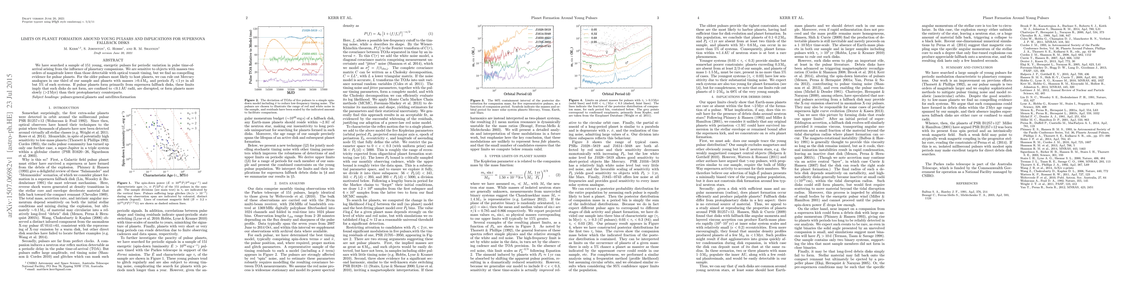 This study searched for planets around 151 young pulsars but found no evidence for them, suggesting that supernova fallback disks either do not form, are too small, are disrupted, or form planets much slower than typical protoplanetary disks.