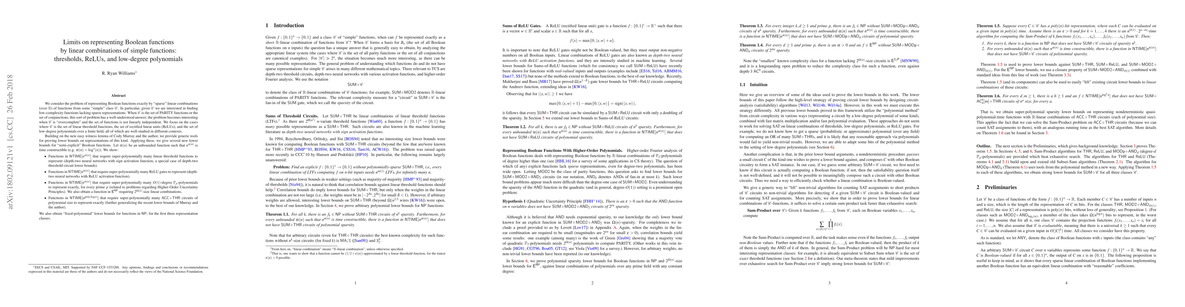 This paper investigates the limits of representing Boolean functions using sparse linear combinations of "simple" functions, including linear thresholds, ReLUs, and low-degree polynomials. It provides tools for proving lower bounds and demonstrates that certain Boolean functions require super-polynomial size representations in these forms, including depth-two neural networks with specific activation functions and linear combinations of low-degree polynomials.