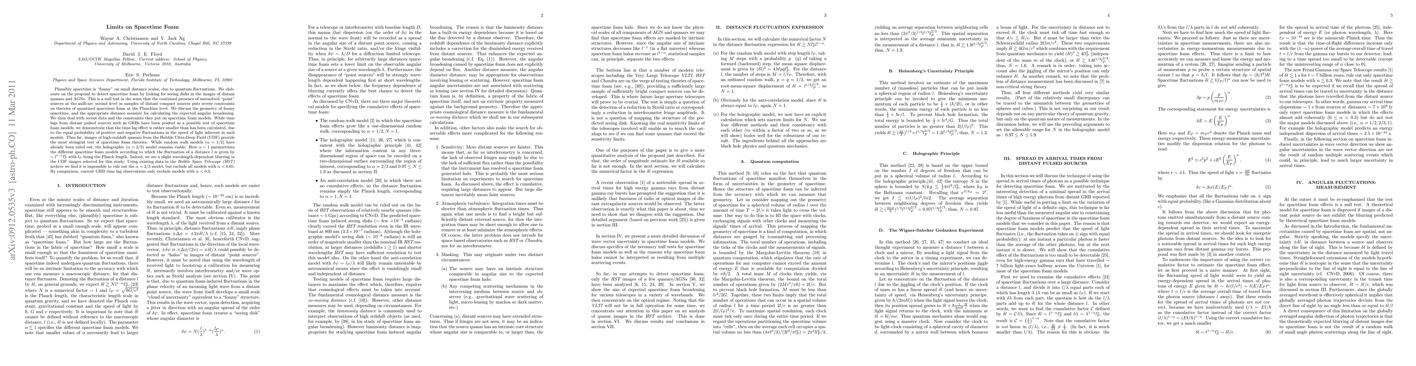 This paper explores the constraints on spacetime foam theories by analyzing the images of distant quasars and AGNs, finding that unresolved point sources at milli-arc second levels impose stringent limits. The study concludes that while random walk models are ruled out, the holographic model remains viable, with current data from the Hubble Space Telescope archive excluding models with $\alpha<0.65$.