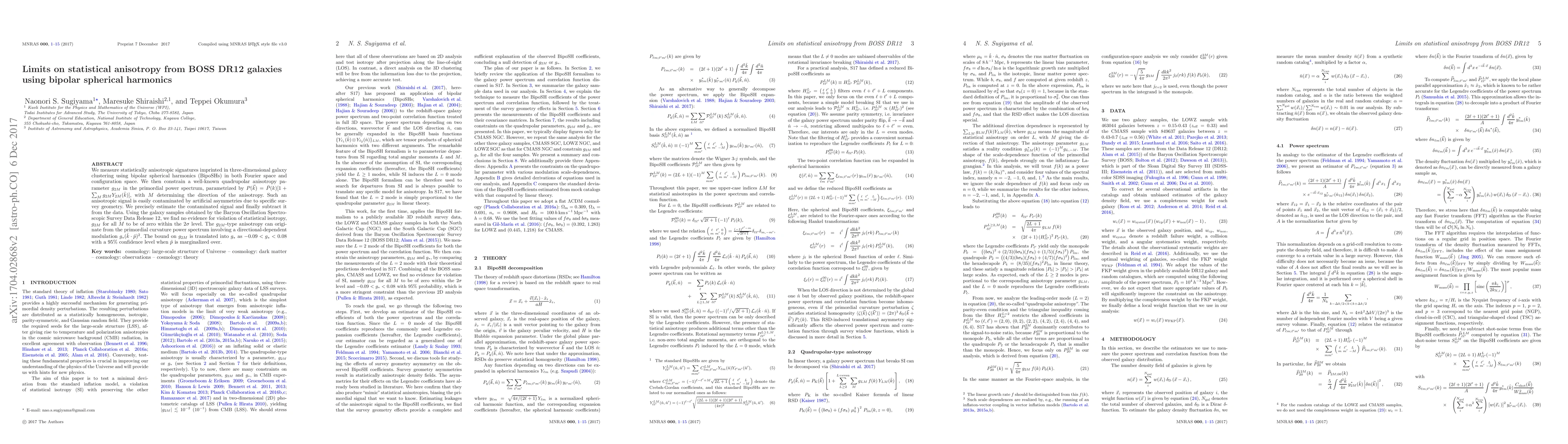 We measure statistically anisotropic signatures imprinted in three-dimensional galaxy clustering using bipolar spherical harmonics (BipoSHs) in both Fourier space and configuration space. We then constrain a well-known quadrupolar anisotropy parameter $g_{2M}$ in the primordial power spectrum, parametrized by $P(\vec{k}) = \bar{P}(k) [ 1 + \sum_{M} g_{2M} Y_{2M}(\hat{k}) ]$, with $M$ determining the direction of the anisotropy. Such an anisotropic signal is easily contaminated by artificial asymmetries due to specific survey geometry. We precisely estimate the contaminated signal and finally subtract it from the data. Using the galaxy samples obtained by the Baryon Oscillation Spectroscopic Survey Data Release 12, we find no evidence for violation of statistical isotropy, $g_{2M}$ for all $M$ to be of zero within the $2\sigma$ level. The $g_{2M}$-type anisotropy can originate from the primordial curvature power spectrum involving a directional-dependent modulation $g_* (\hat{k} \cdot \hat{p})^2$. The bound on $g_{2M}$ is translated into $g_*$ as $-0.09 < g_* < 0.08$ with a $95\%$ confidence level when $\hat{p}$ is marginalized over.