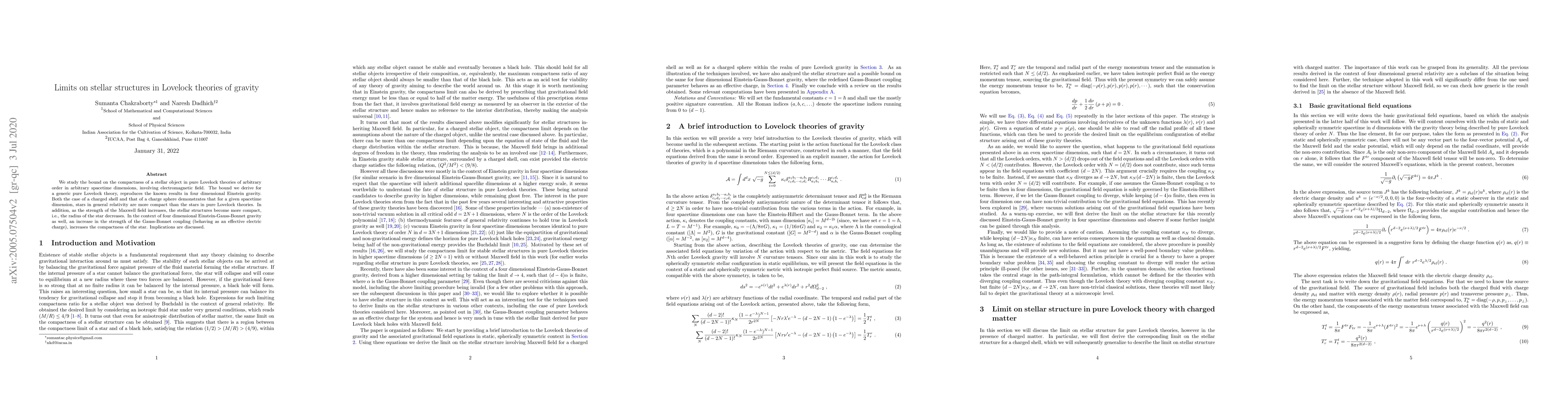 A combination of analytical and numerical methods were used to derive bounds on stellar structure in pure Lovelock theories.
