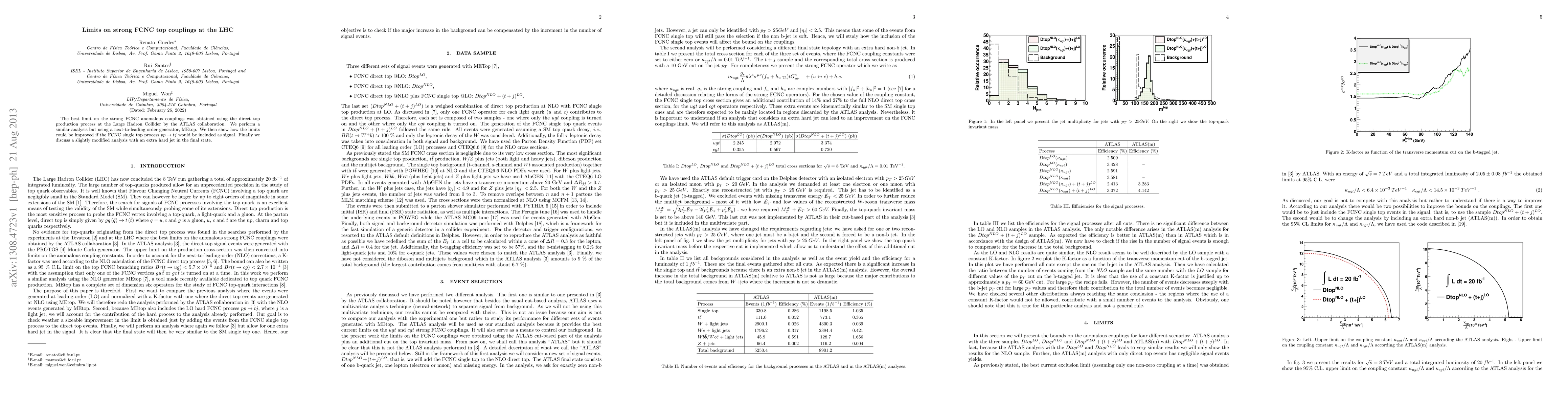 The best limit on the strong FCNC anomalous couplings was obtained using the direct top production process at the Large Hadron Collider by the ATLAS collaboration. We perform a similar analysis but using a next-to-leading order generator, MEtop. We then show how the limits could be improved if the FCNC single top process $pp \to tj$ would be included as signal. Finally we discuss a slightly modified analysis with an extra hard jet in the final state.