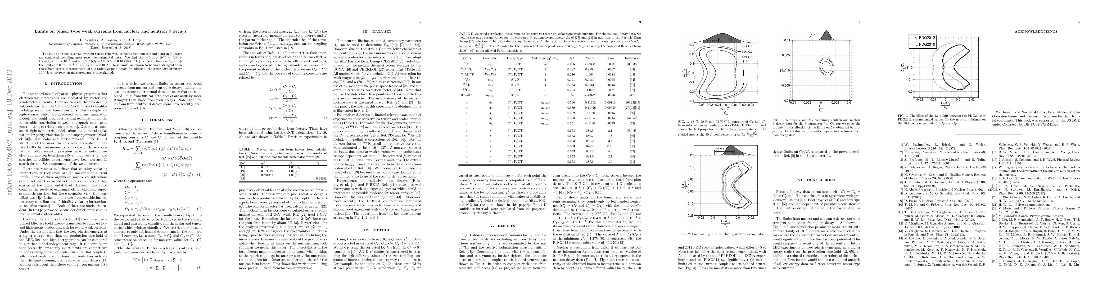 Researchers have set new limits on tensor type weak currents from nuclear and neutron beta decays, finding that they are more stringent than previous measurements of the radiative pion decay.