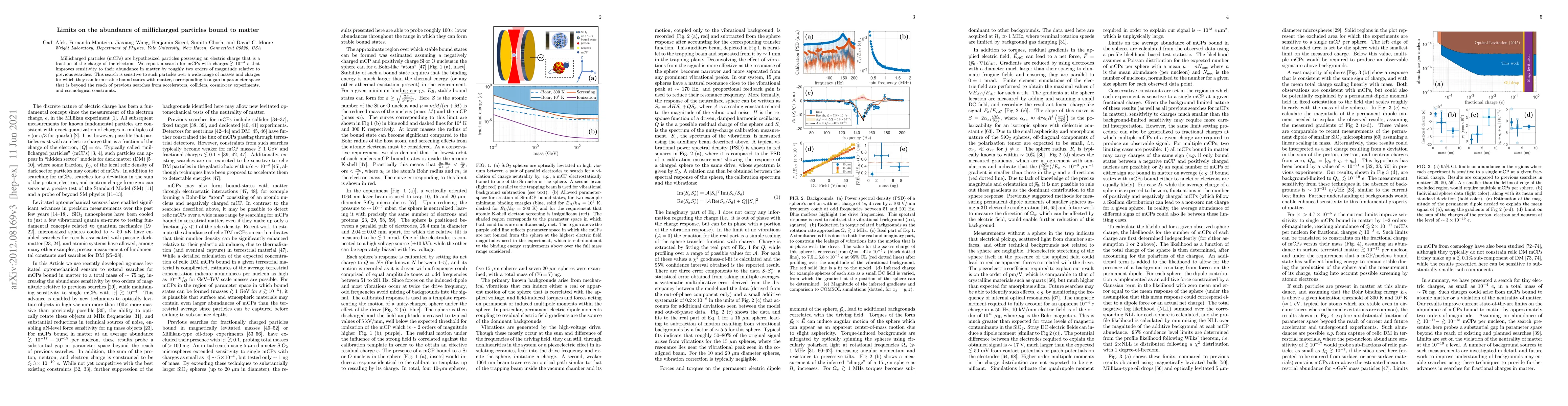 Millicharged particles (mCPs) are hypothesized particles possessing an electric charge that is a fraction of the charge of the electron. We report a search for mCPs with charges $\gtrsim 10^{-4}~e$ that improves sensitivity to their abundance in matter by roughly two orders of magnitude relative to previous searches. This search is sensitive to such particles over a wide range of masses and charges for which they can form stable bound states with matter, corresponding to a gap in parameter space that is beyond the reach of previous searches from accelerators, colliders, cosmic-ray experiments, and cosmological constraints.