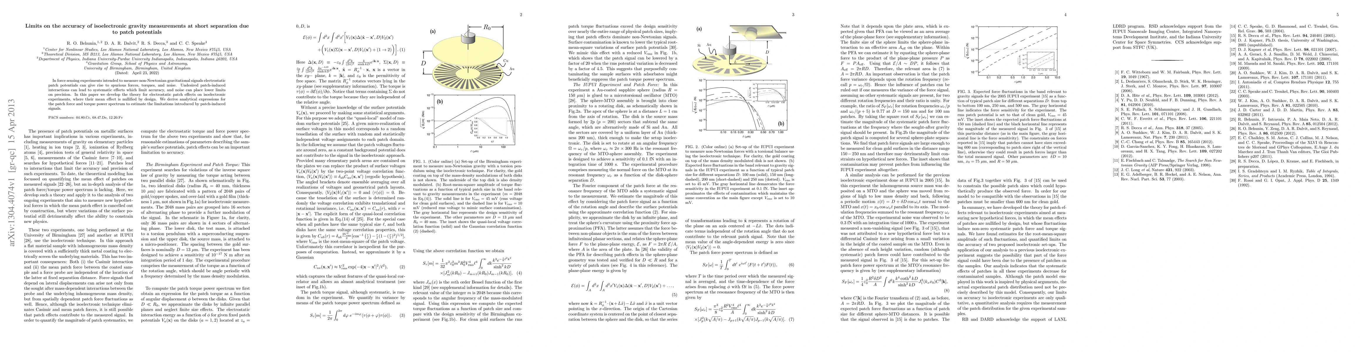 This paper develops a theoretical framework for understanding the impact of electrostatic patch potentials on the accuracy of isoelectronic gravity measurements at short distances, deriving analytical expressions for patch-induced force and torque to quantify the resulting limitations.