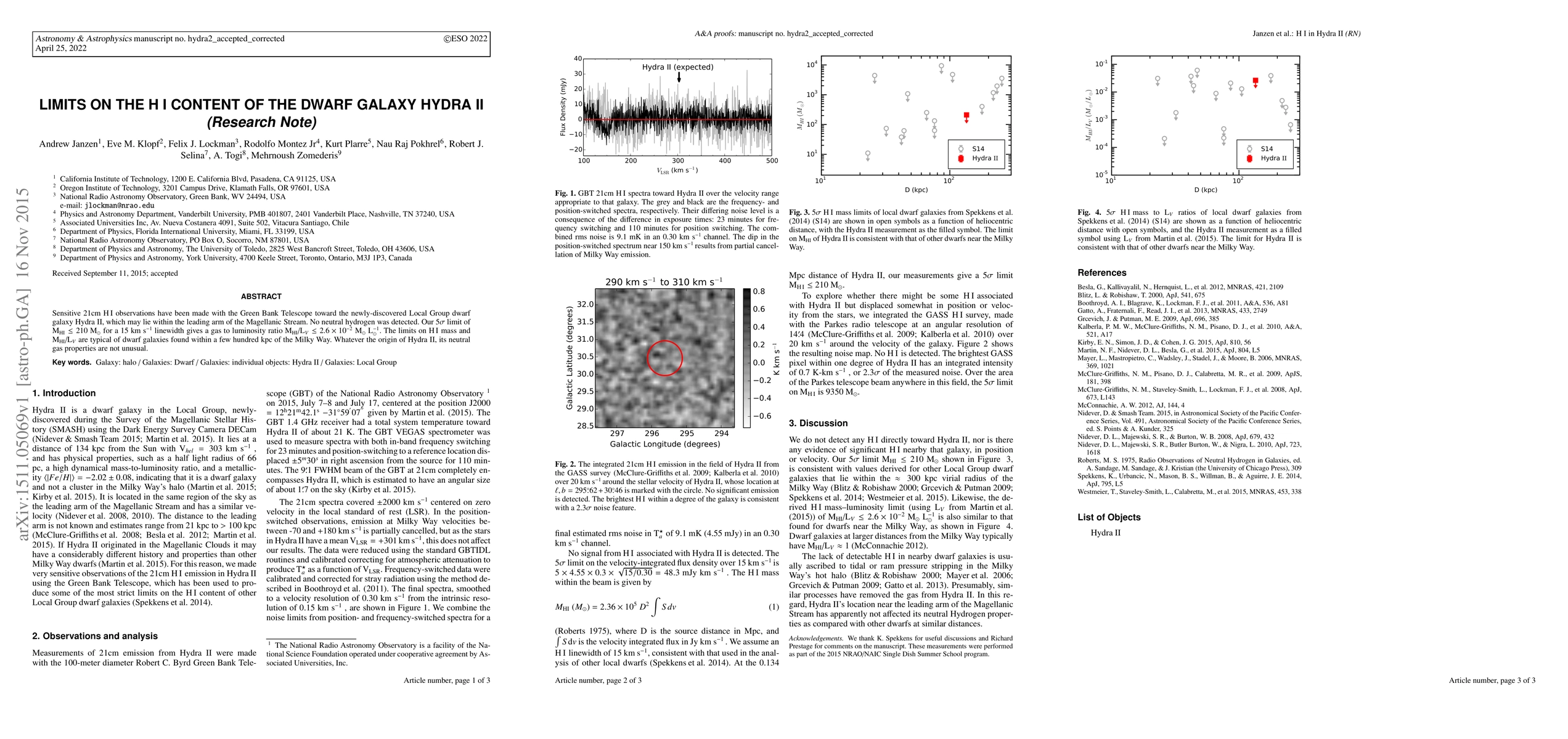 The study presents a new measurement of the HImass limit for Hydra II and contributes to our understanding of the neutral hydrogen content of nearby dwarf galaxies.