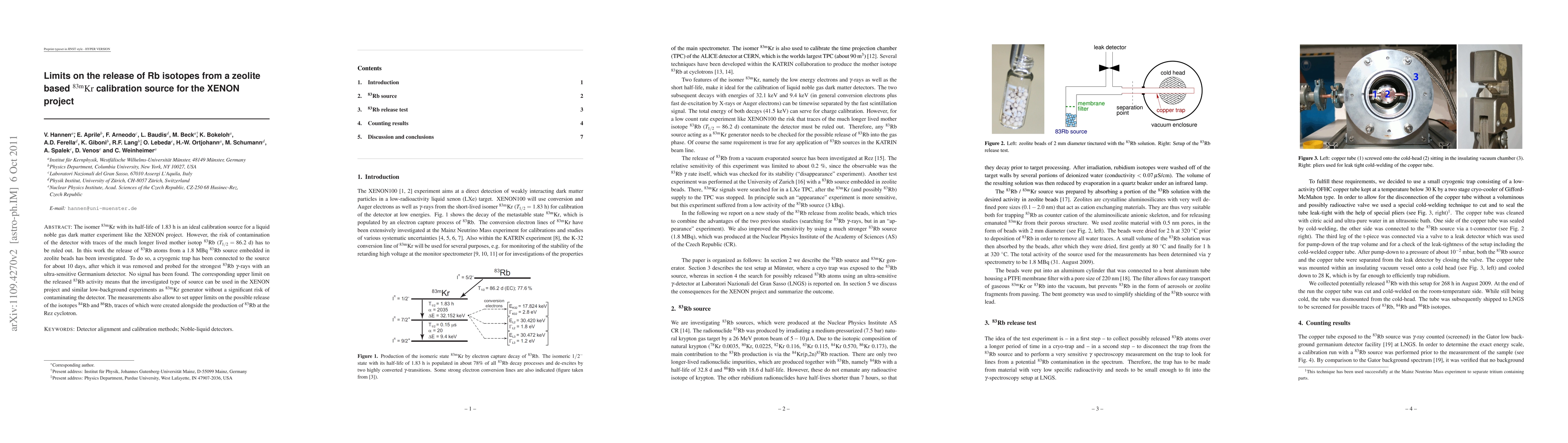 This paper investigates the release of 83Rb isotopes from a zeolite-based 83mKr calibration source, finding no detectable signal after 10 days. The study sets an upper limit on 83Rb contamination, confirming the source's suitability for the XENON dark matter experiment without significant detector risk.