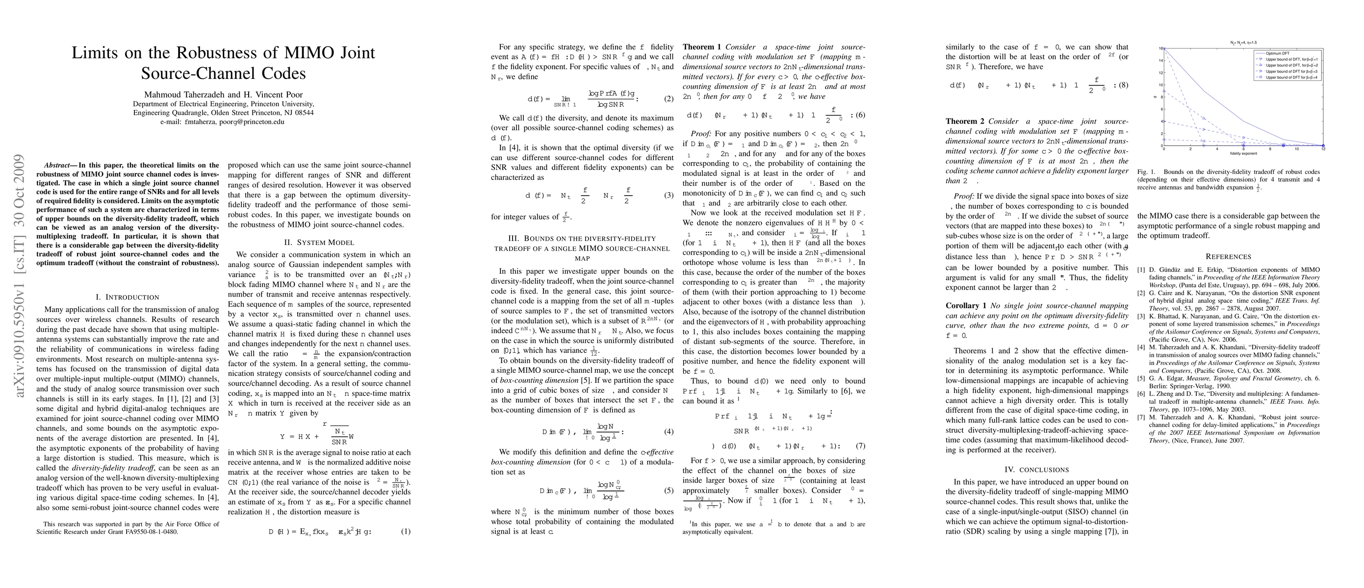 In this paper, the theoretical limits on the robustness of MIMO joint source channel codes is investigated. The case in which a single joint source channel code is used for the entire range of SNRs and for all levels of required fidelity is considered. Limits on the asymptotic performance of such a system are characterized in terms of upper bounds on the diversity-fidelity tradeoff, which can be viewed as an analog version of the diversity-multiplexing tradeoff. In particular, it is shown that there is a considerable gap between the diversity-fidelity tradeoff of robust joint source-channel codes and the optimum tradeoff (without the constraint of robustness).