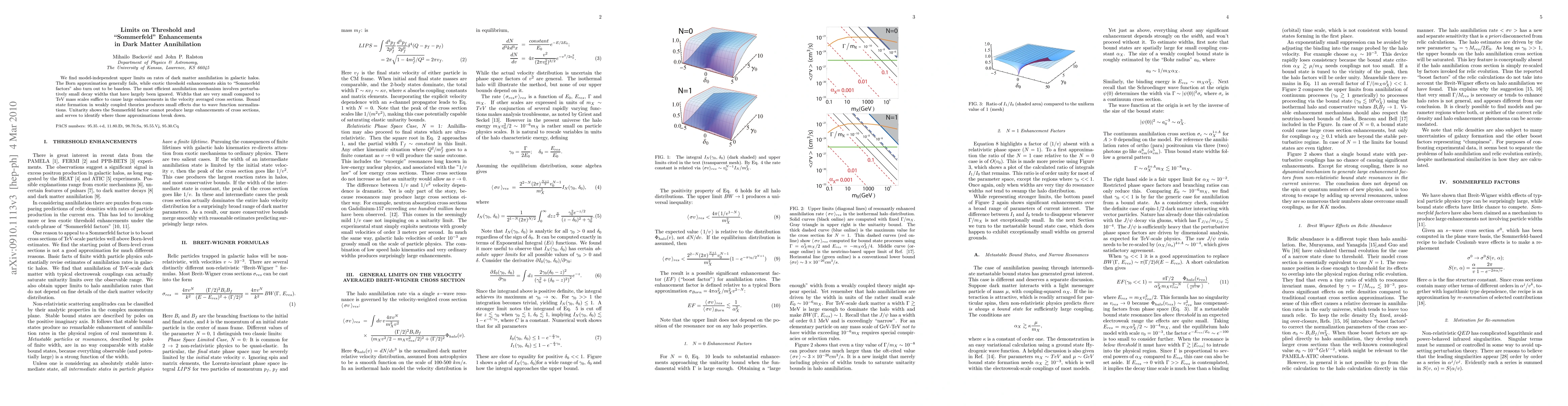 We find model-independent upper limits on rates of dark matter annihilation in galactic halos. The Born approximation generally fails, while exotic threshold enhancements akin to "Sommerfeld factors" also turn out to be baseless The most efficient annihilation mechanism involves perturbatively small decay widths that have largely been ignored. Widths that are very small compared to TeV mass scales suffice to effectively saturate unitarity bounds on annihilation rates. Bound state formation in weakly coupled theories produces small effects due to wave function normalizations. Unitarity shows the Sommerfeld factor cannot produce large changes in cross sections, and serves to identify where those approximations break down.