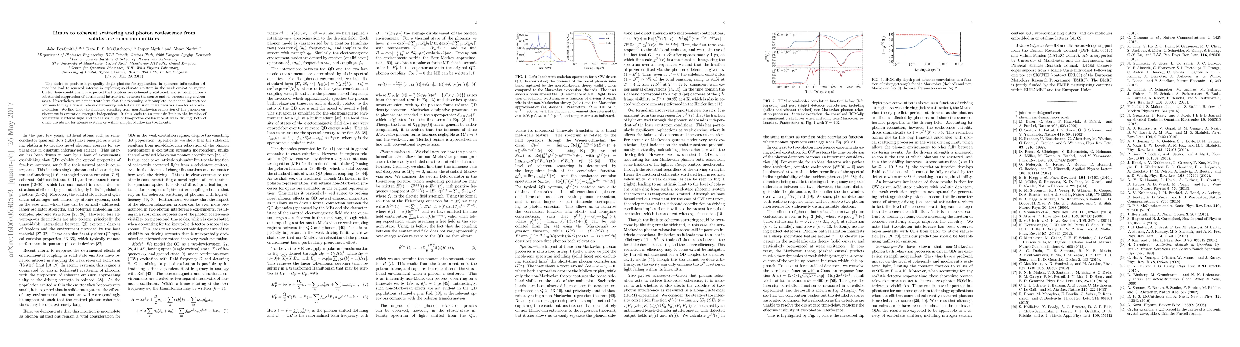 This paper investigates the limitations of coherent scattering and photon coalescence from solid-state quantum emitters under weak excitations. It reveals that phonon interactions, even at low excitation levels, impose an intrinsic limit on coherent scattering and two-photon coalescence visibility, contrary to expectations based on simpler Markovian models.