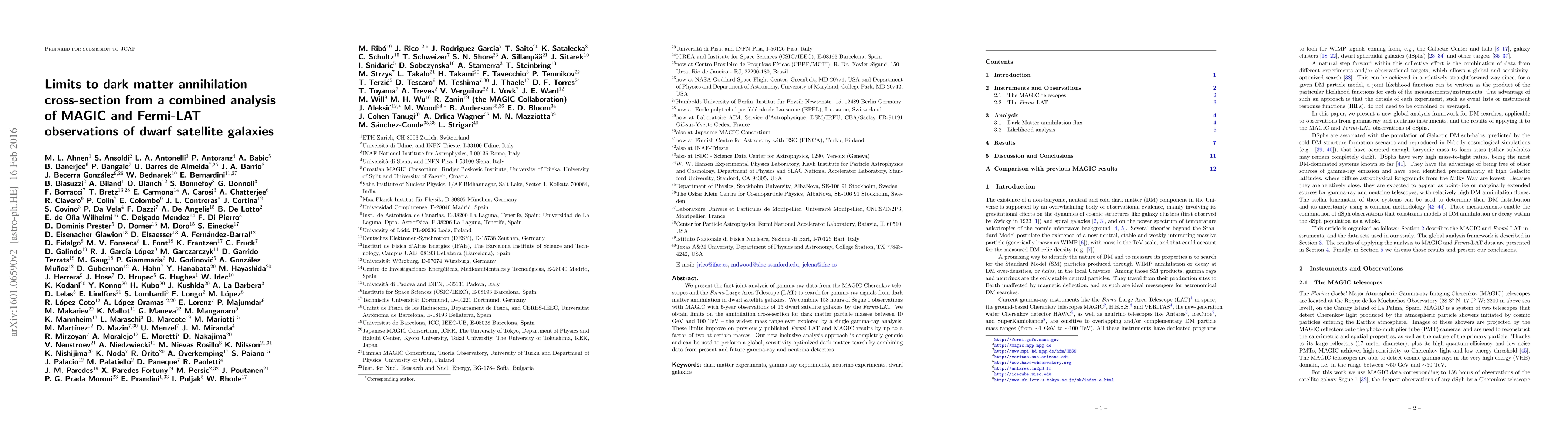 This paper combines MAGIC and Fermi-LAT observations to set new limits on the dark matter annihilation cross-section across a broad mass range. The joint analysis improves previous results by up to a factor of two and introduces a generic method for future dark matter searches.