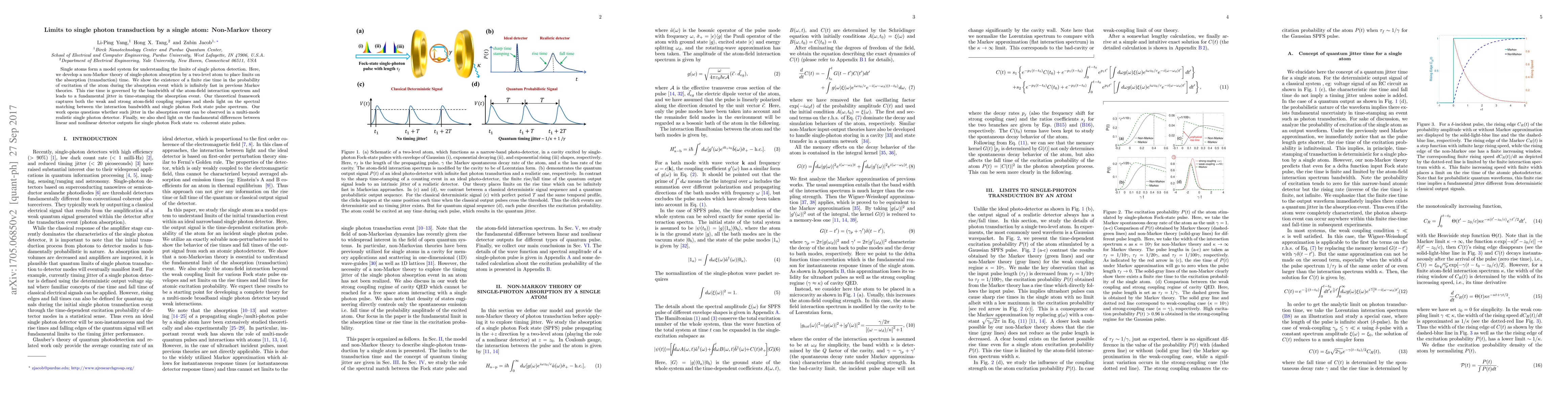 This paper develops a non-Markov theory to analyze single-photon absorption by a two-level atom, revealing a finite rise time in excitation probability, governed by the atom-field interaction spectrum, and questioning the observability of this jitter in practical detectors. It also explores the differences in detector outputs for single-photon vs. coherent state pulses.