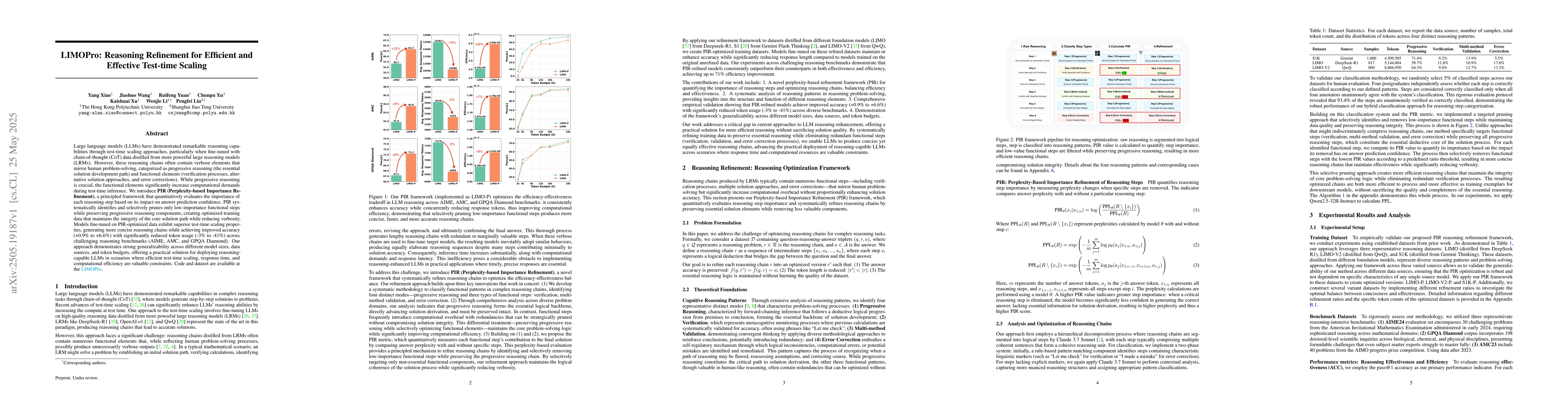 The principal technical contribution is the PIR framework, which refines reasoning chains by quantifying the importance of each step, enabling efficient test-time scaling of LLMs.